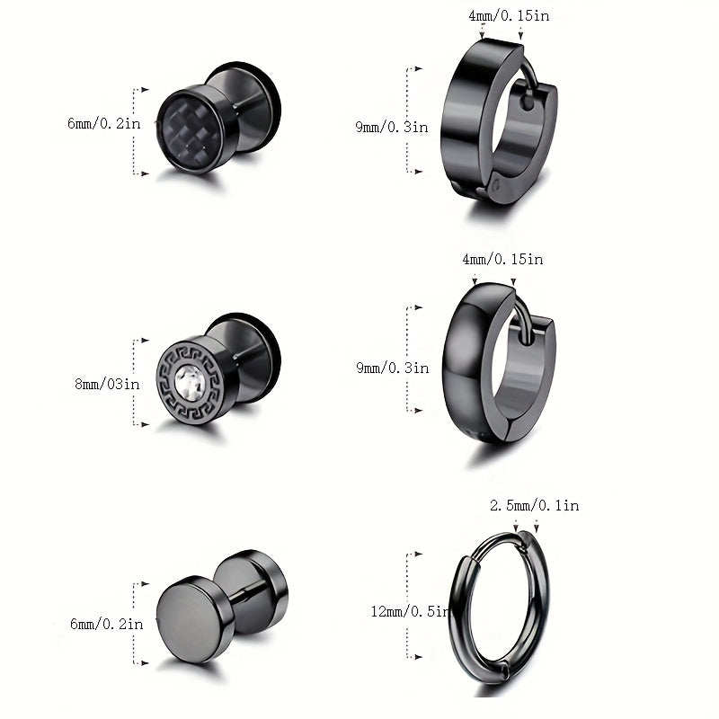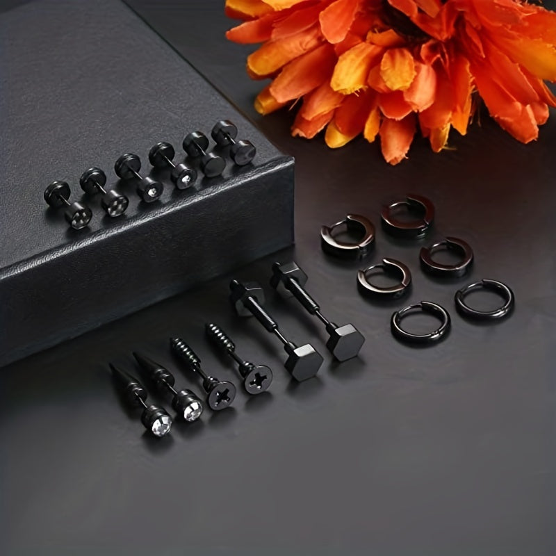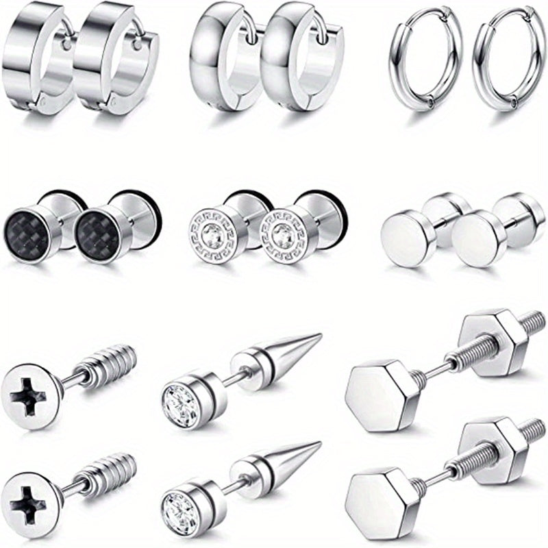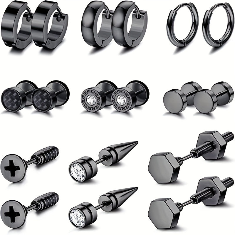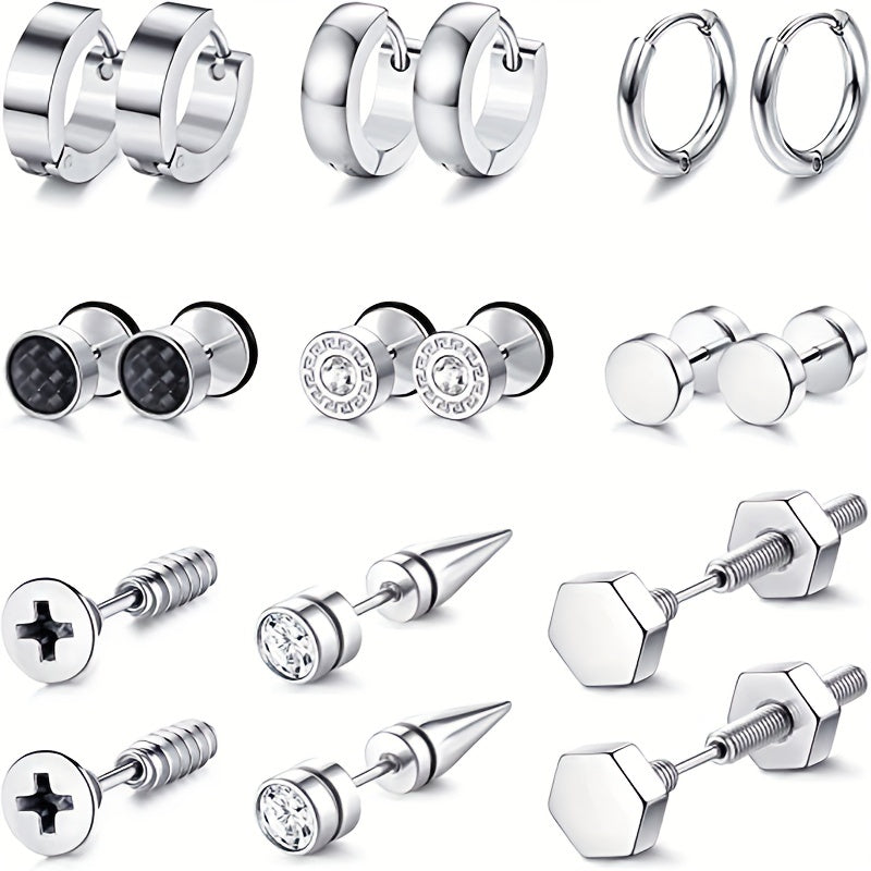 Explore this set of 9 pairs of stainless steel hoop earrings suitable for both men and women. These stylish pierced earrings are versatile and add a touch of elegance to any outfit.