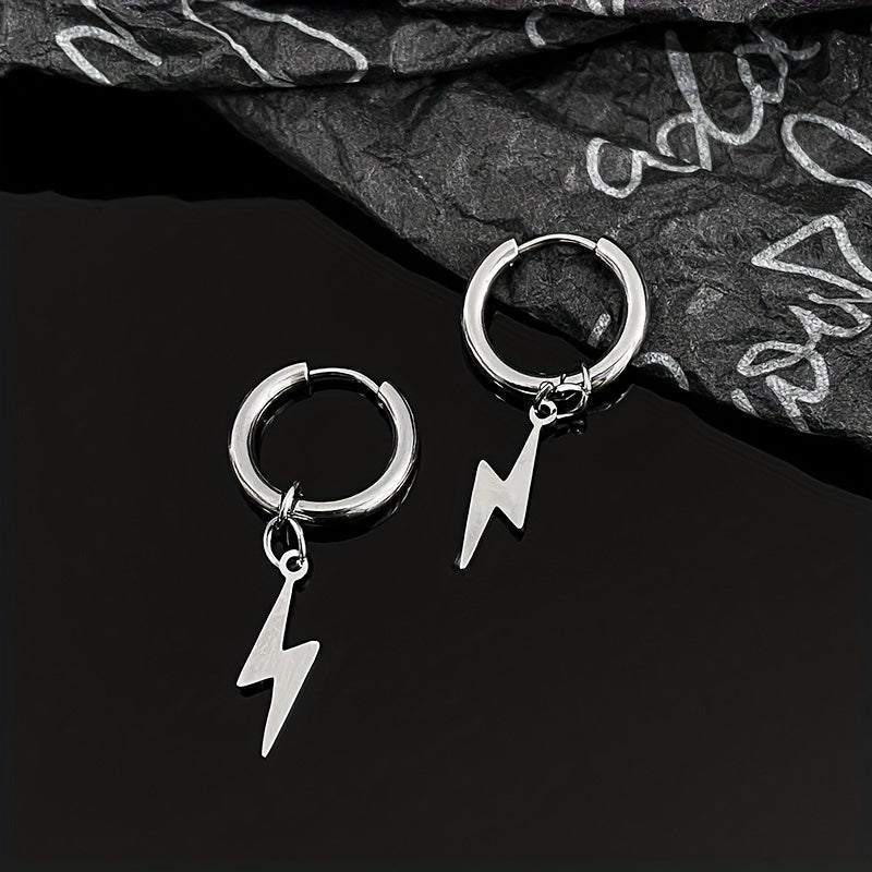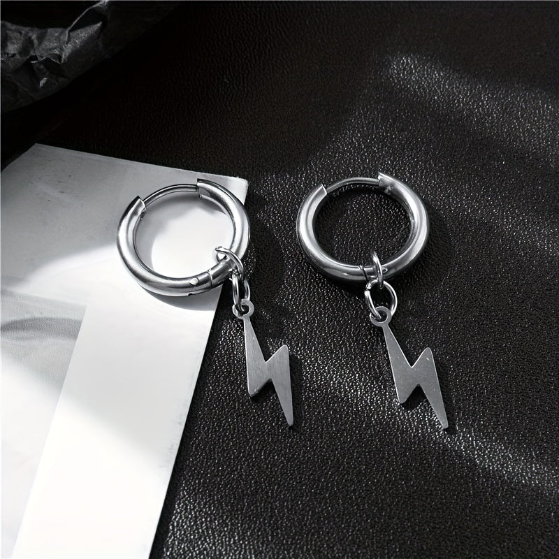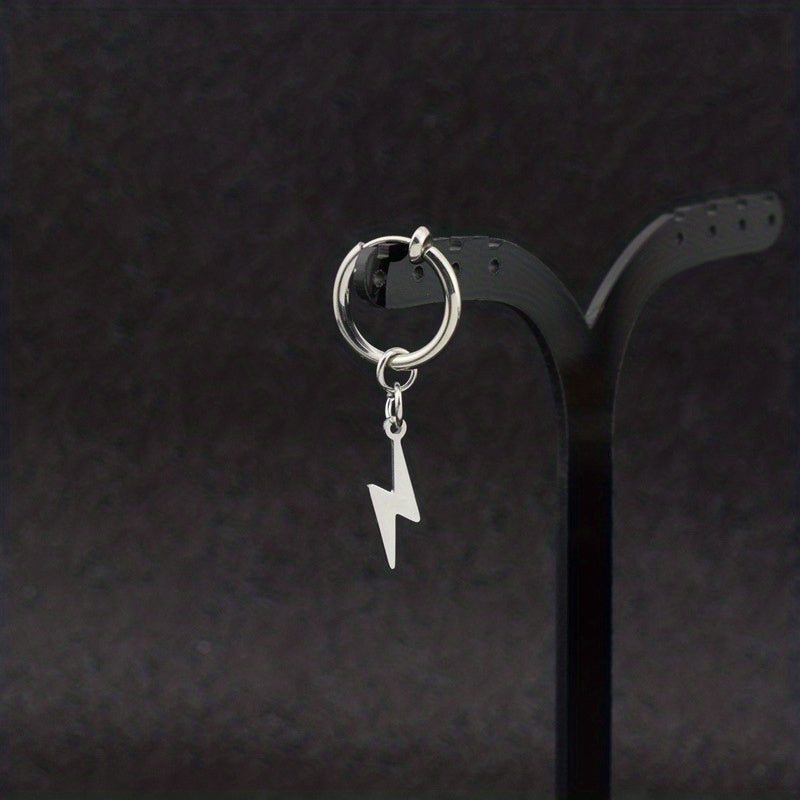 Elevate your style with these lightning pendant ear clips made of stainless steel for a unique and edgy look.