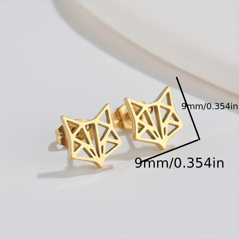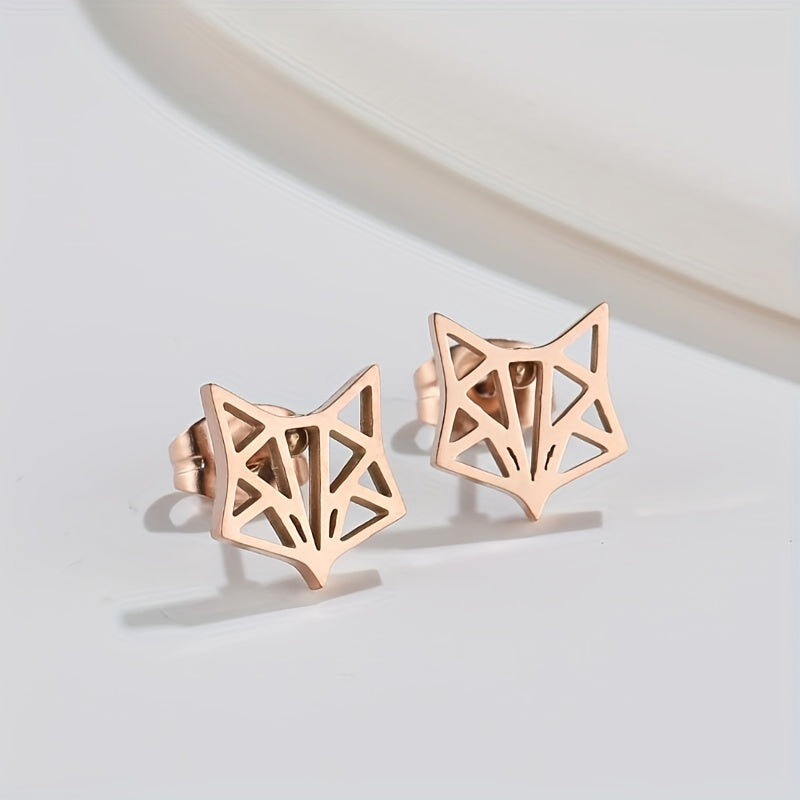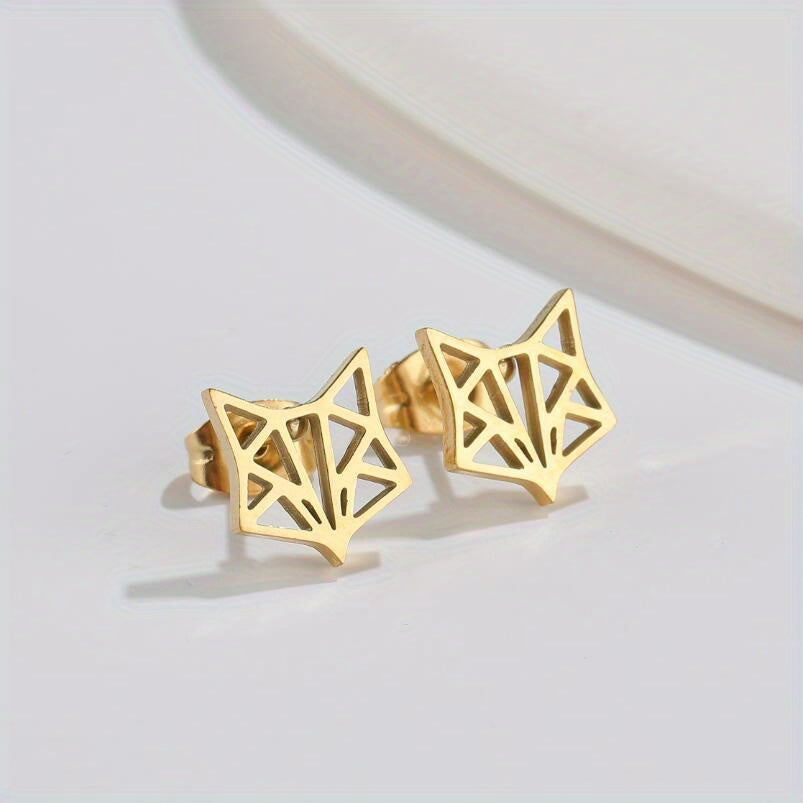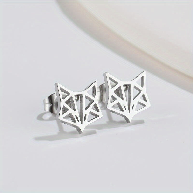 These fashionable stainless steel men's earrings feature a lovely origami small animal fox design. Perfect for adding a touch of style to any outfit.