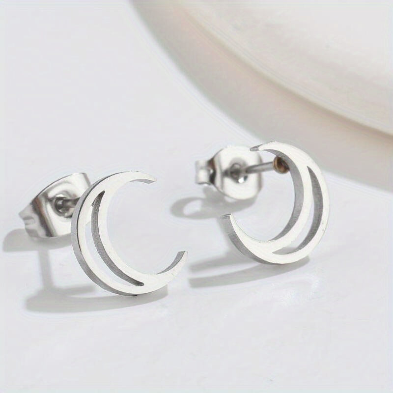 These stylish moon stud earrings are crafted from stainless steel, perfect for weddings and parties. Suitable for men.
