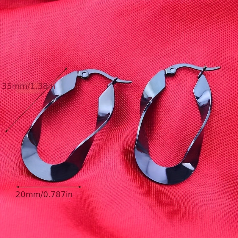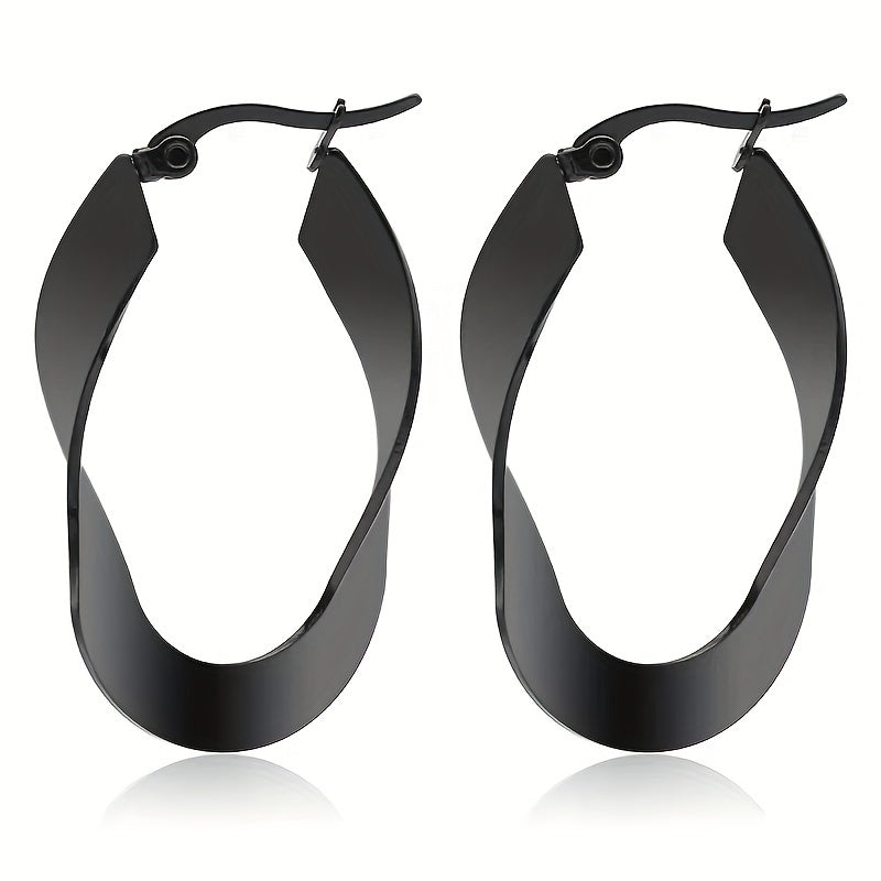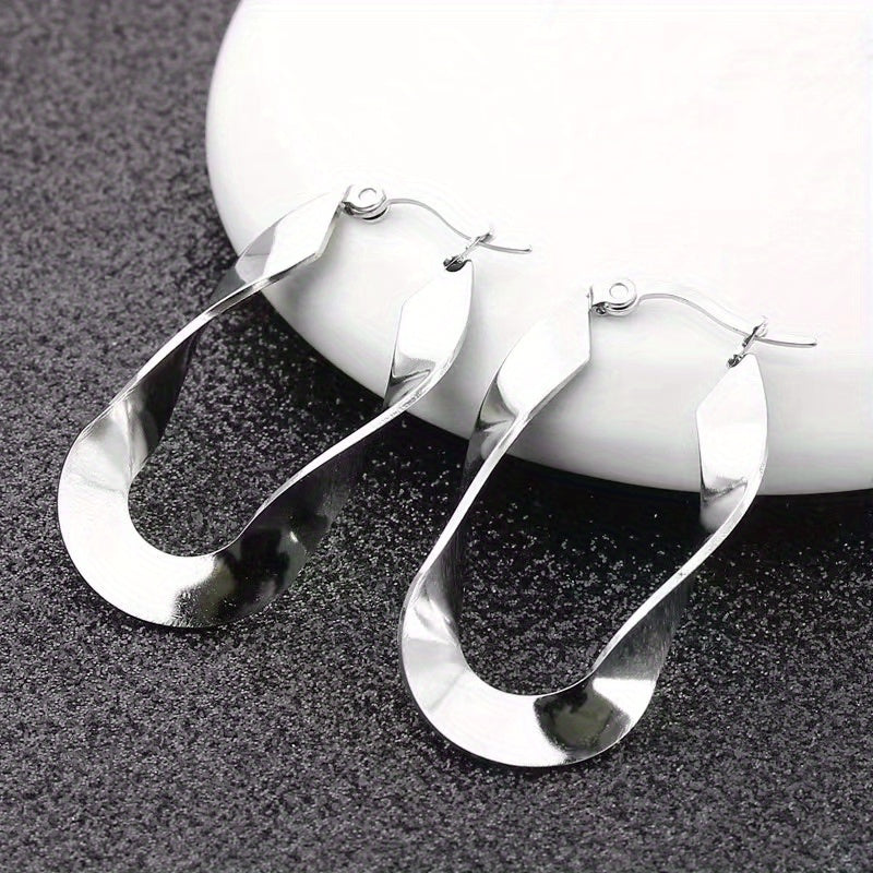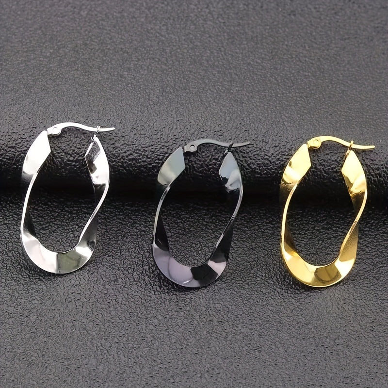 Elegant and modern stainless steel earrings designed for men, featuring an oval flat twisted shape.