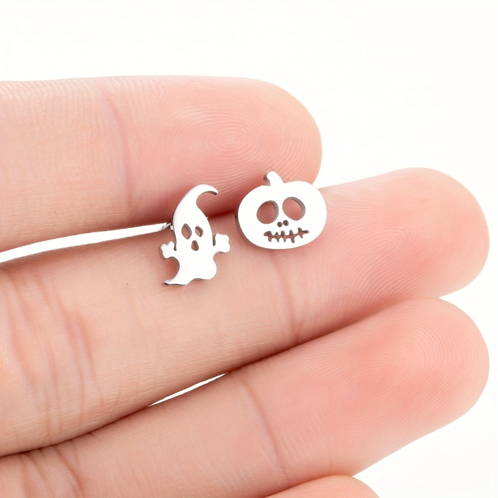 These unique earrings feature a ghost pumpkin design, adding a touch of personality to your look. Made of stainless steel, they are durable and stylish.
