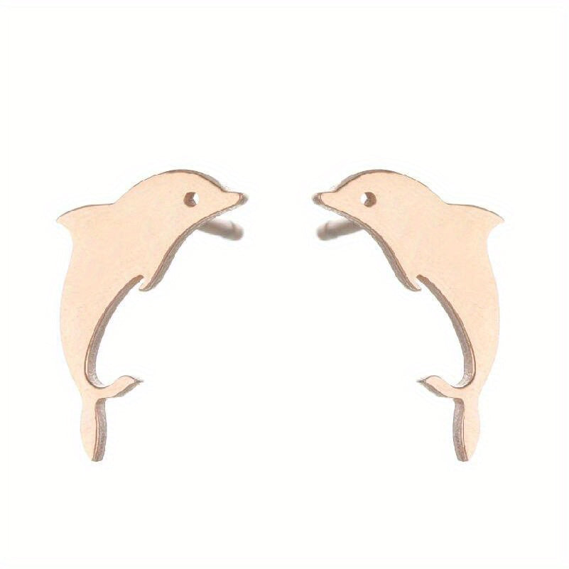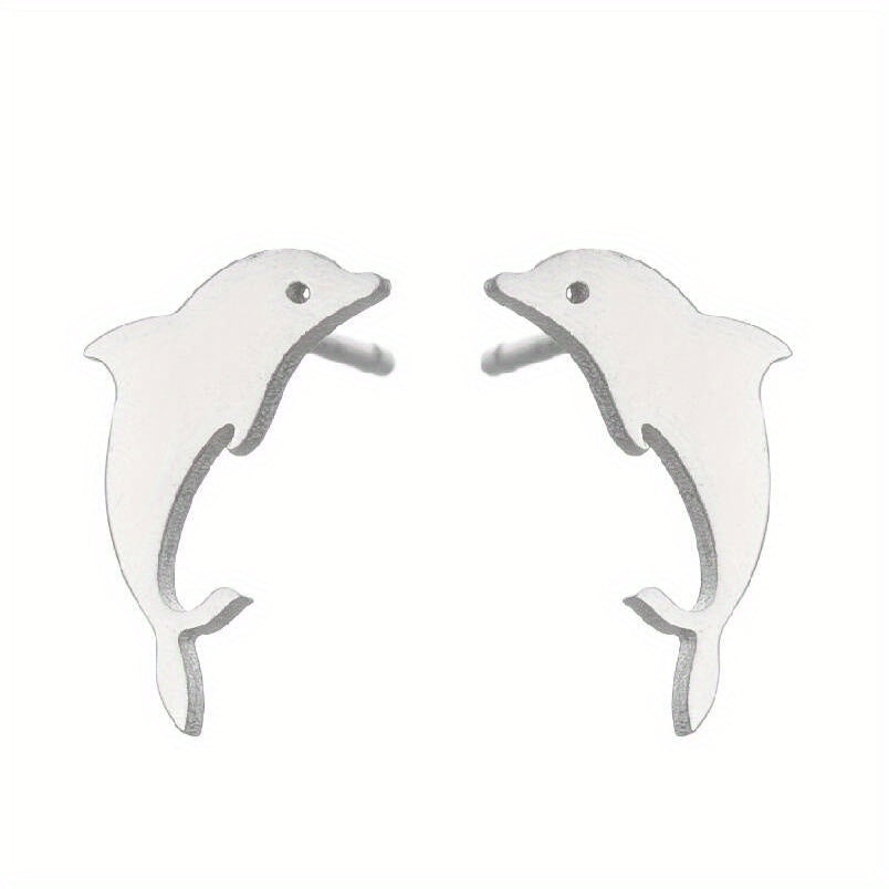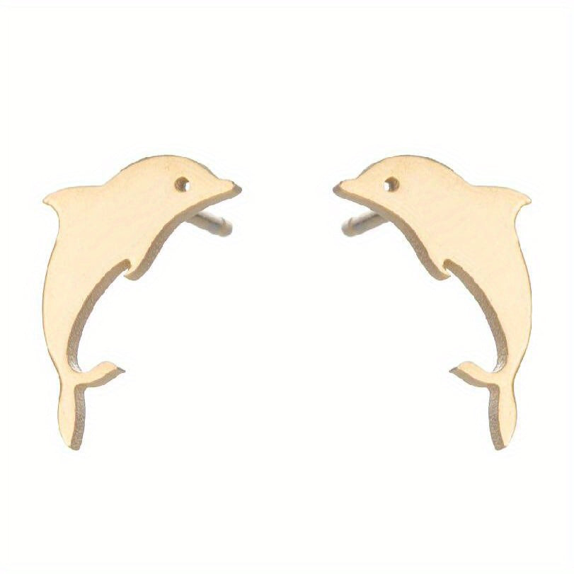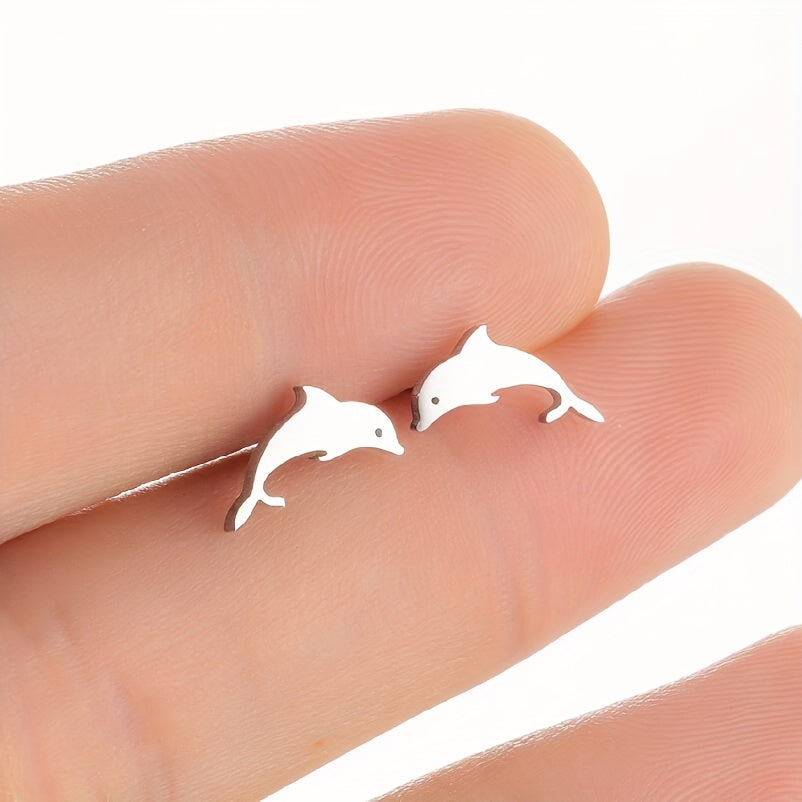 These stylish stud earrings feature small whale animal design, crafted from stainless steel for durability and a modern look.