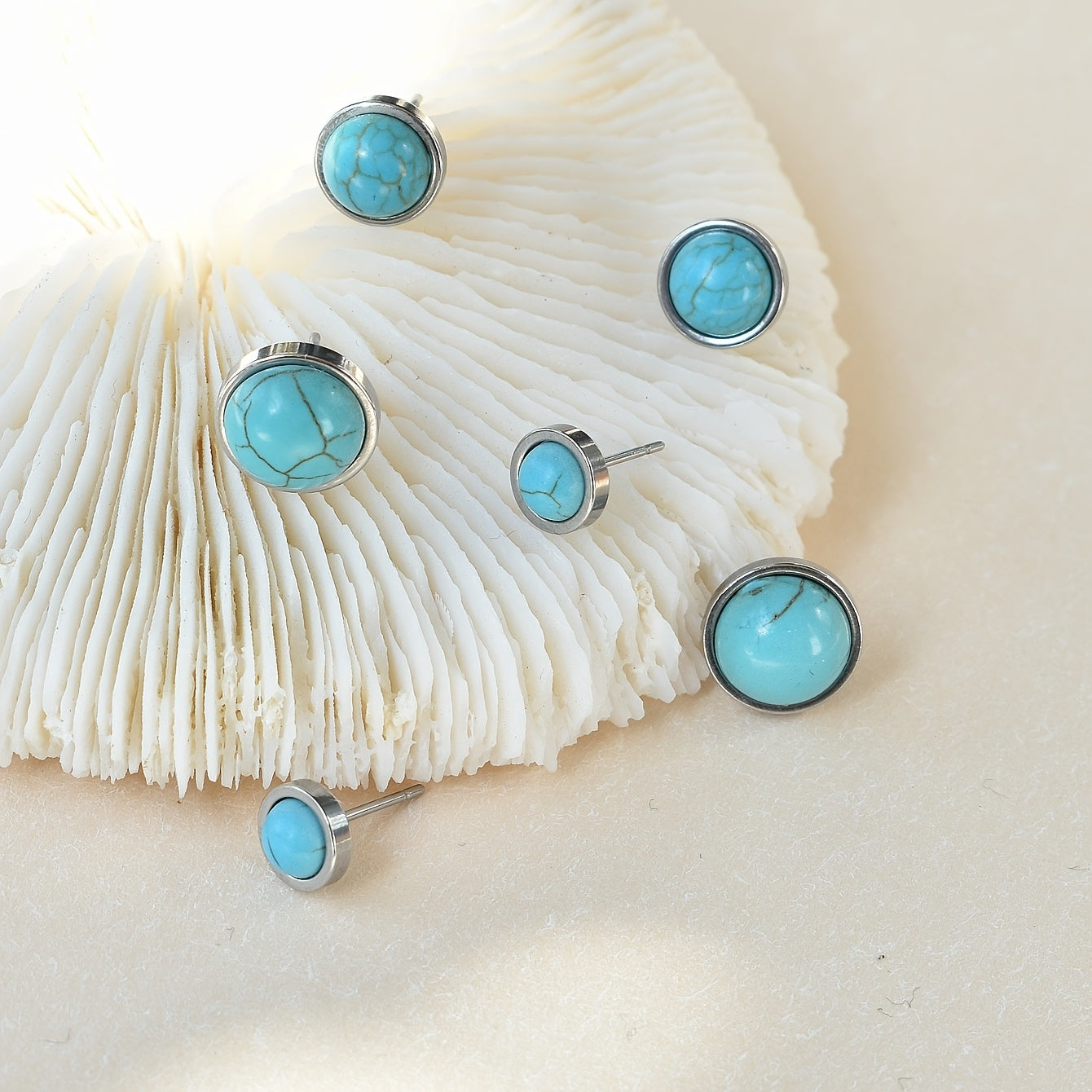 This set includes 3 pairs of stainless steel stud earrings featuring beautiful stone accents. Perfect for everyday wear or special occasions.