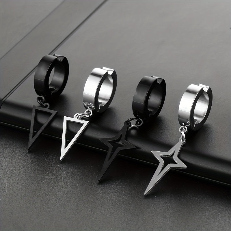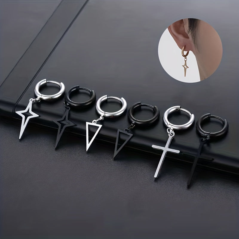These stainless steel earrings feature a triangle pendant with a hollow cross design, adding a touch of personality and style to any outfit.