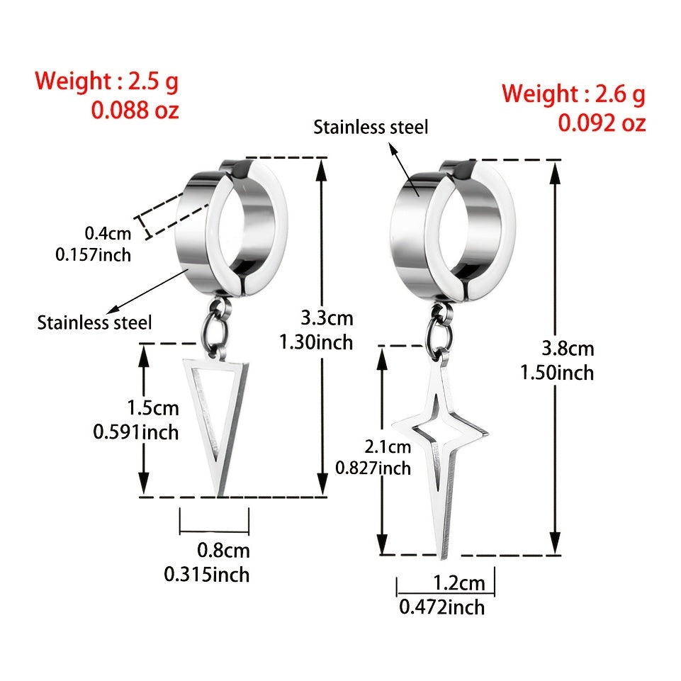 This stainless steel dangle earring features a triangle star design, adding a touch of style to your look.