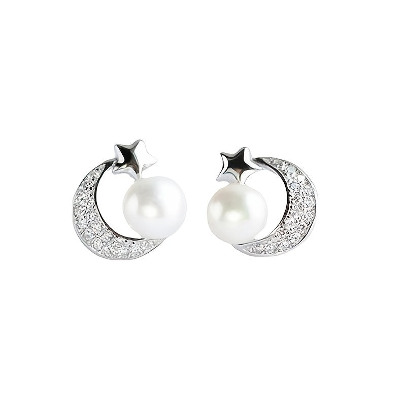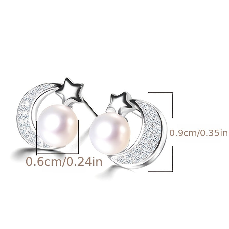 Add a touch of elegance to your ensemble with these stunning stud earrings featuring star, moon, zircon, and a pearl. Crafted from 925 silver plated metal, these earrings are perfect for adding a touch of sparkle to any outfit.