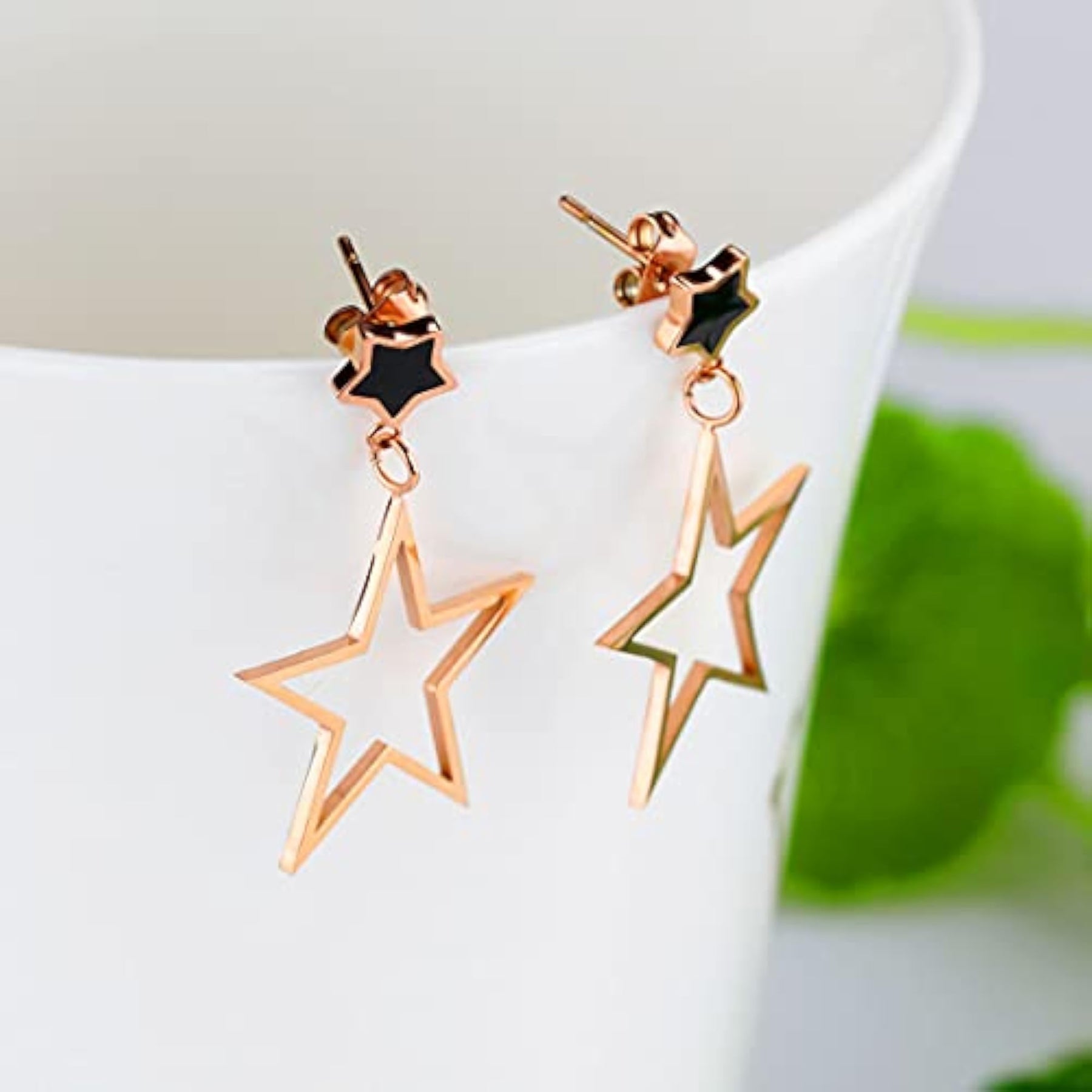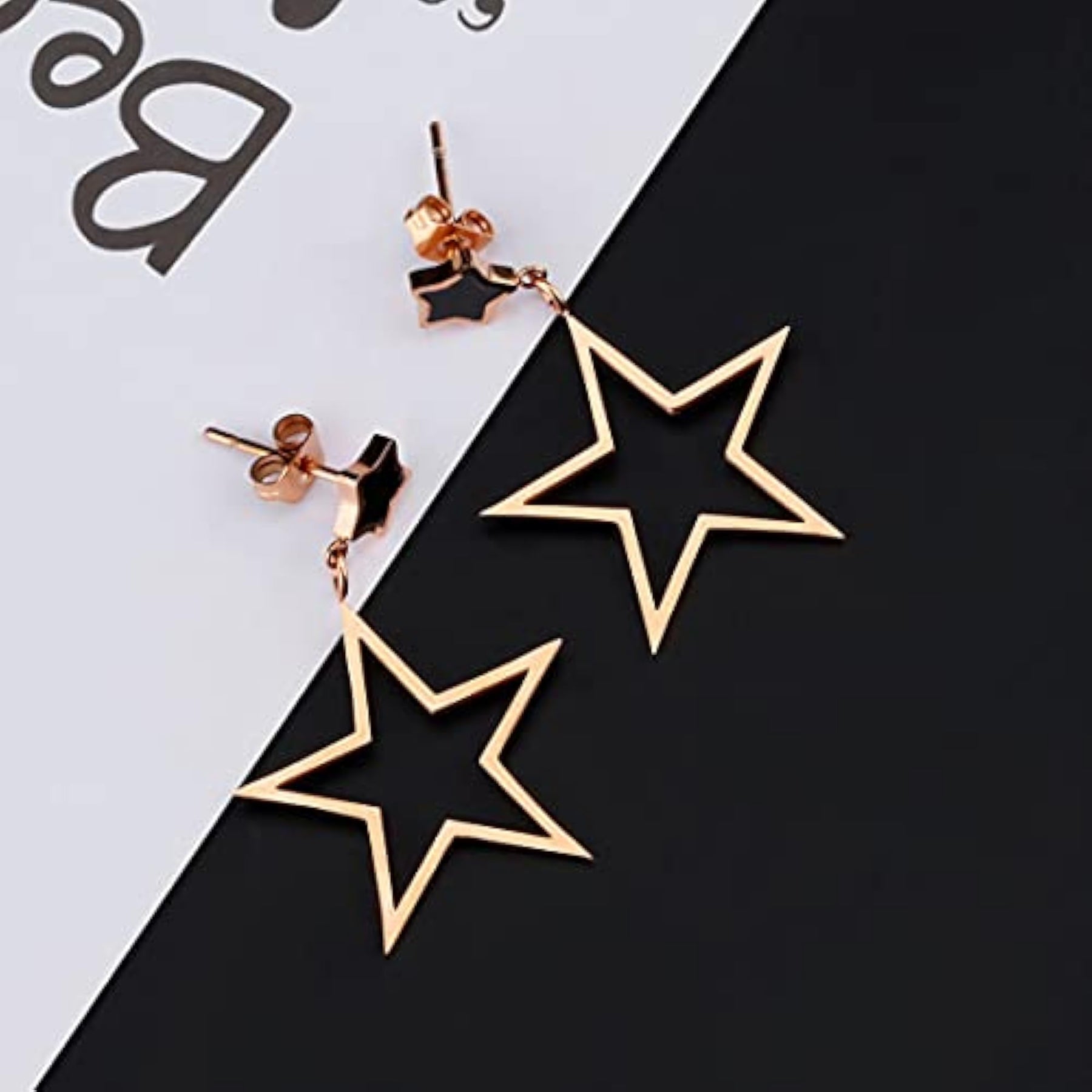 Elevate your style with these stunning star-shaped drop earrings crafted from plated stainless steel.