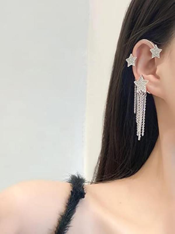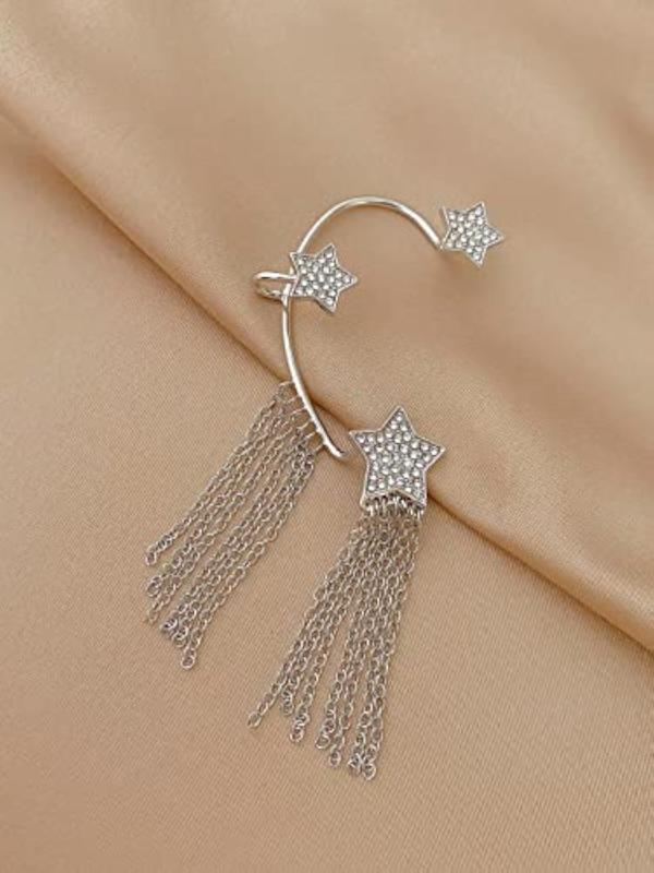 Unique and stylish earring and ear cuff set featuring a star design with tassel dangles. Perfect gift for your wife on her birthday or anniversary.