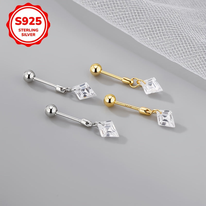 Elevate your style with these versatile sterling silver earrings featuring diamond-shaped synthetic zirconia inlay. Lightweight at 2g, these earrings are perfect for all seasons.