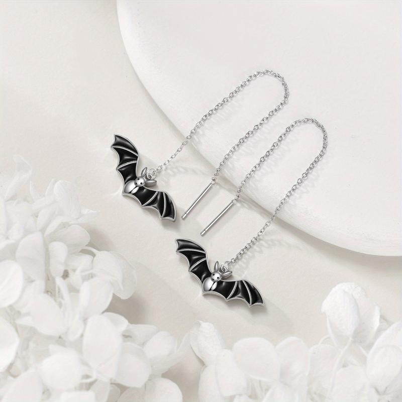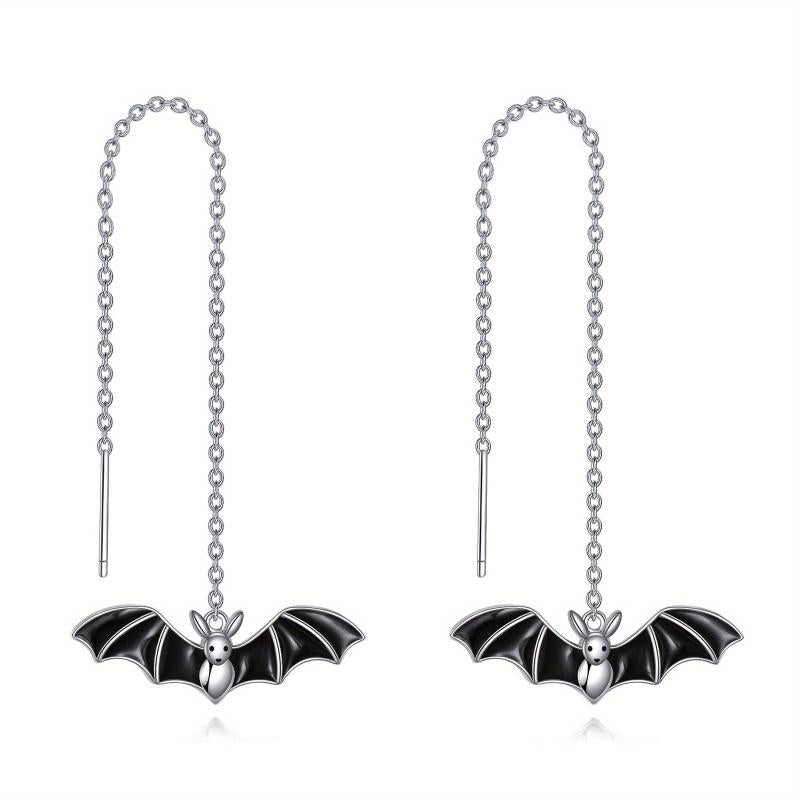 Add a spooky touch to your Halloween outfit with these Sterling Silver Bat Threader Earrings. The perfect accessory for the season!