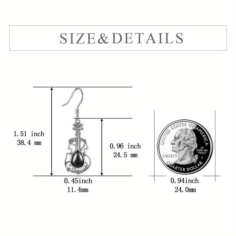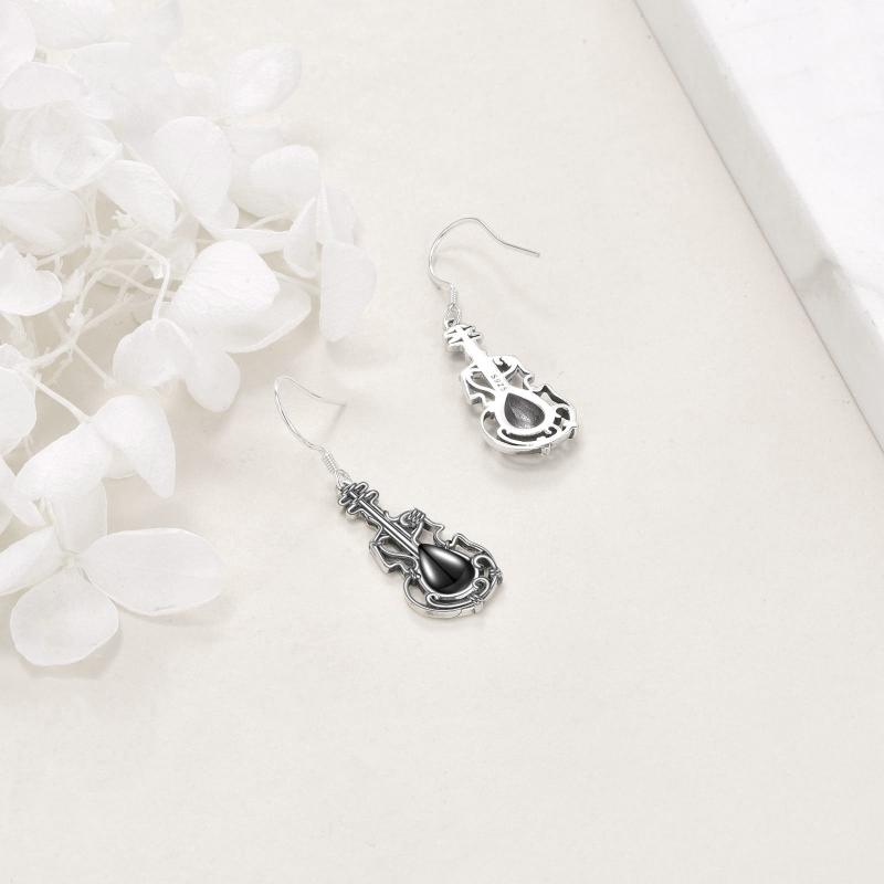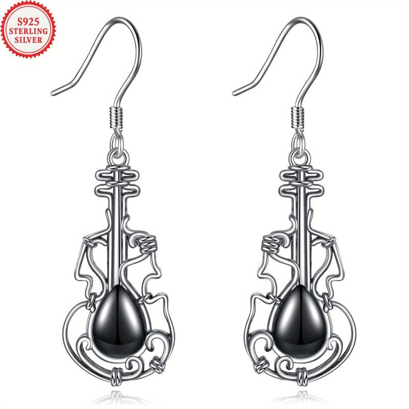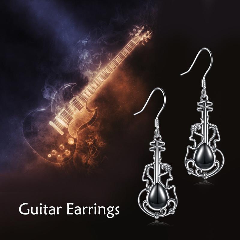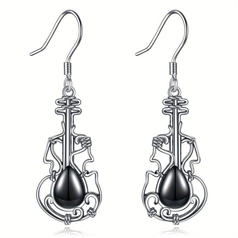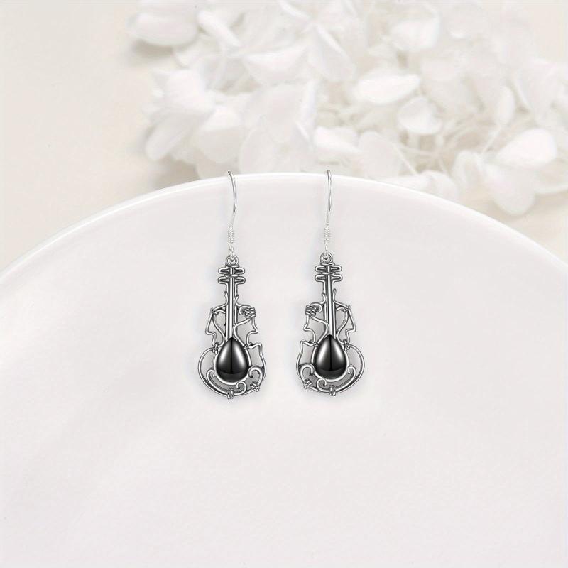 Sterling Silver Classical Guitar Dangle Earrings Vintage Punk Drop Earrings