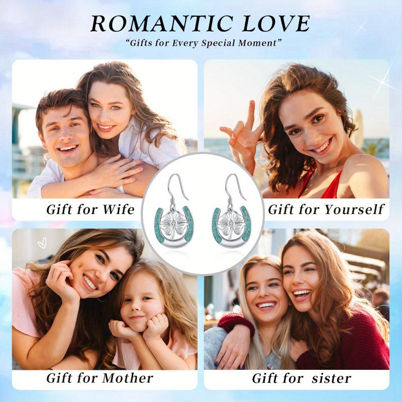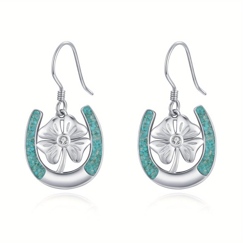 Add some luck to your look with these beautiful sterling silver clover drop earrings featuring a turquoise horseshoe. Perfect for St. Patrick's Day or any day you want to feel lucky!
