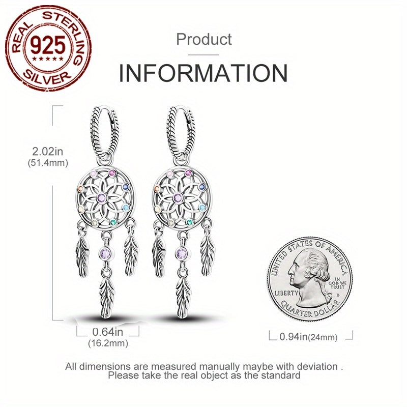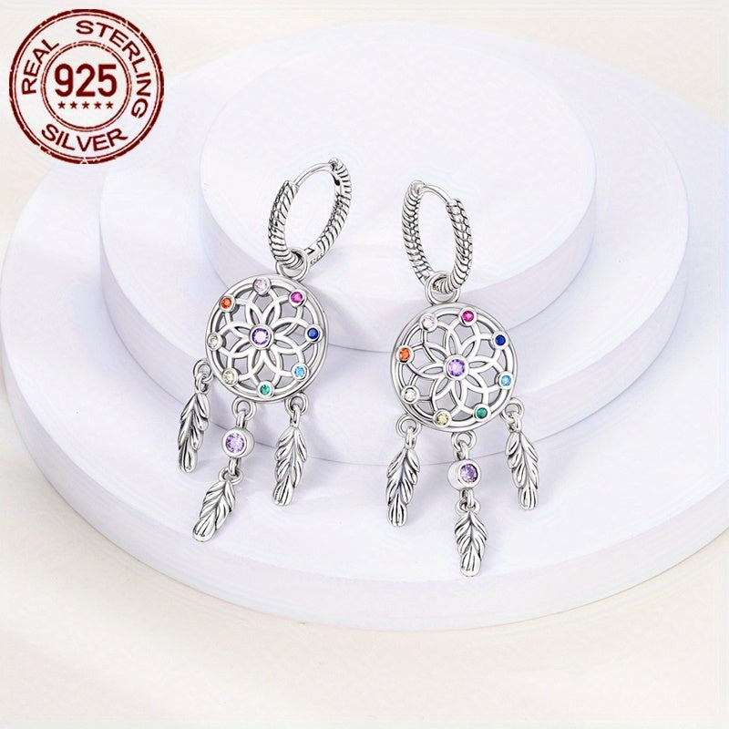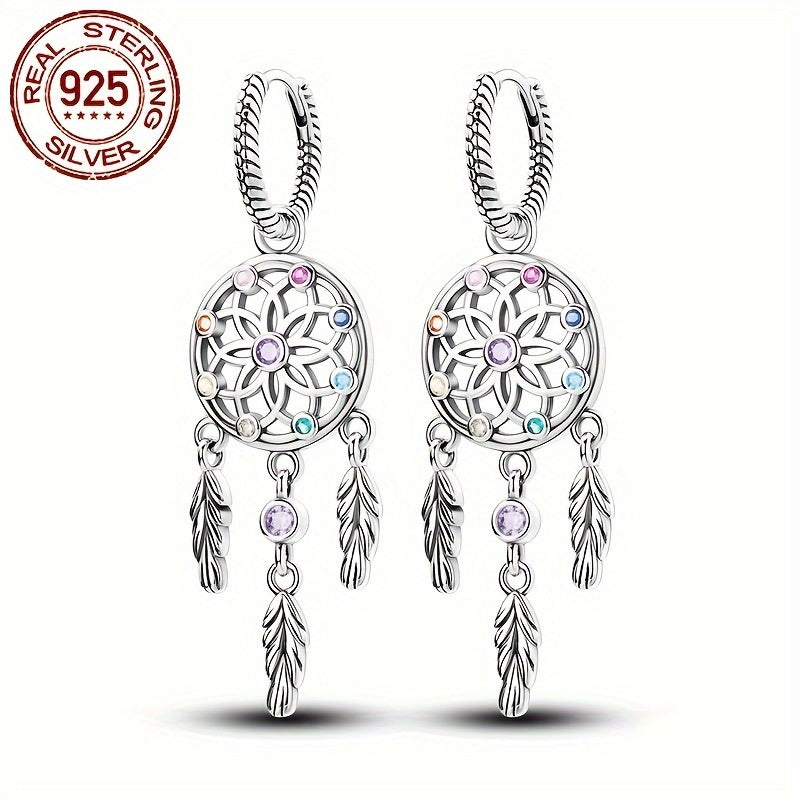 These stunning earrings feature a dream catcher design crafted from 925 sterling silver and snake bone, embellished with zircon stones. Hypoallergenic for sensitive ears.