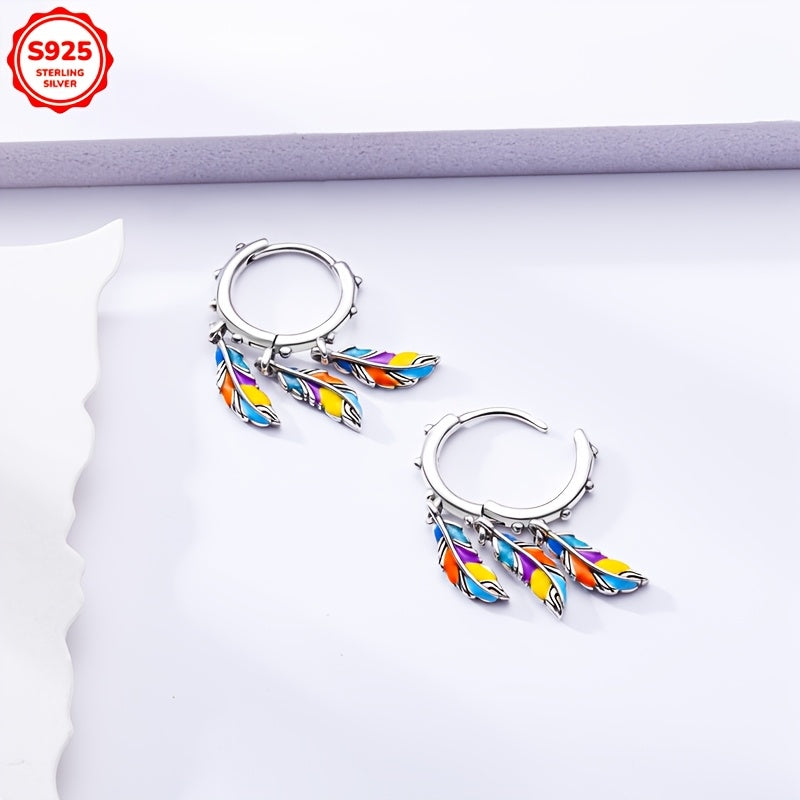 These 925 Sterling Silver Dreamcatcher Earrings feature colorful feather January birthstone synthetic zirconia. They make a lovely silver plated jewelry gift for birthdays.