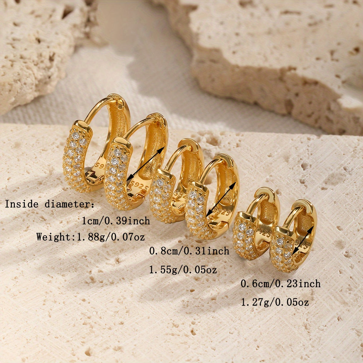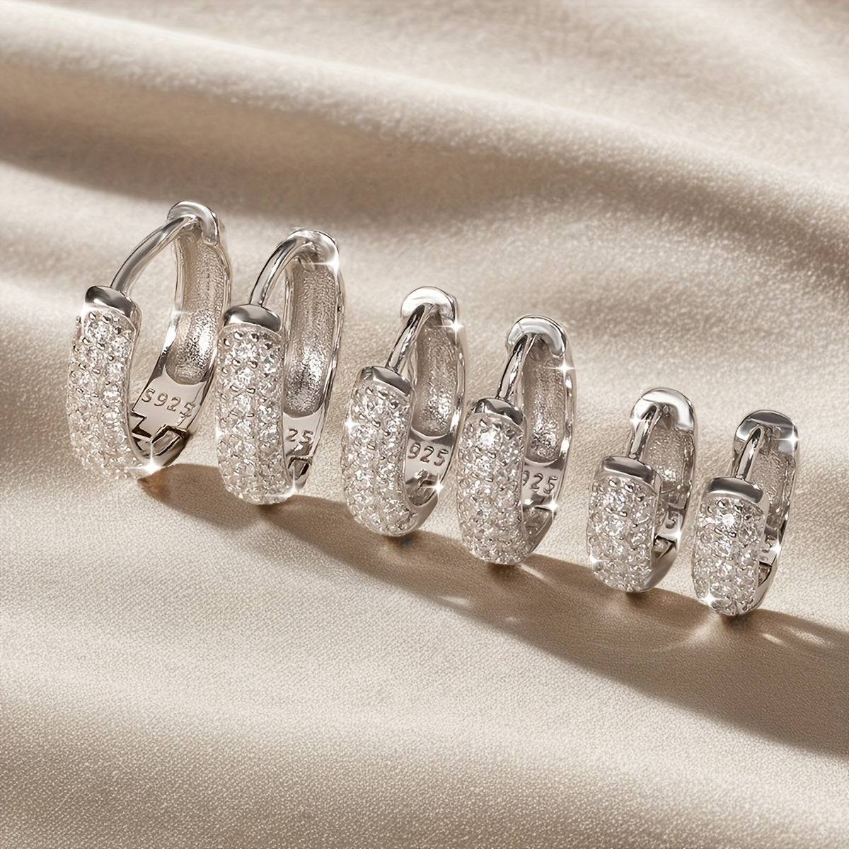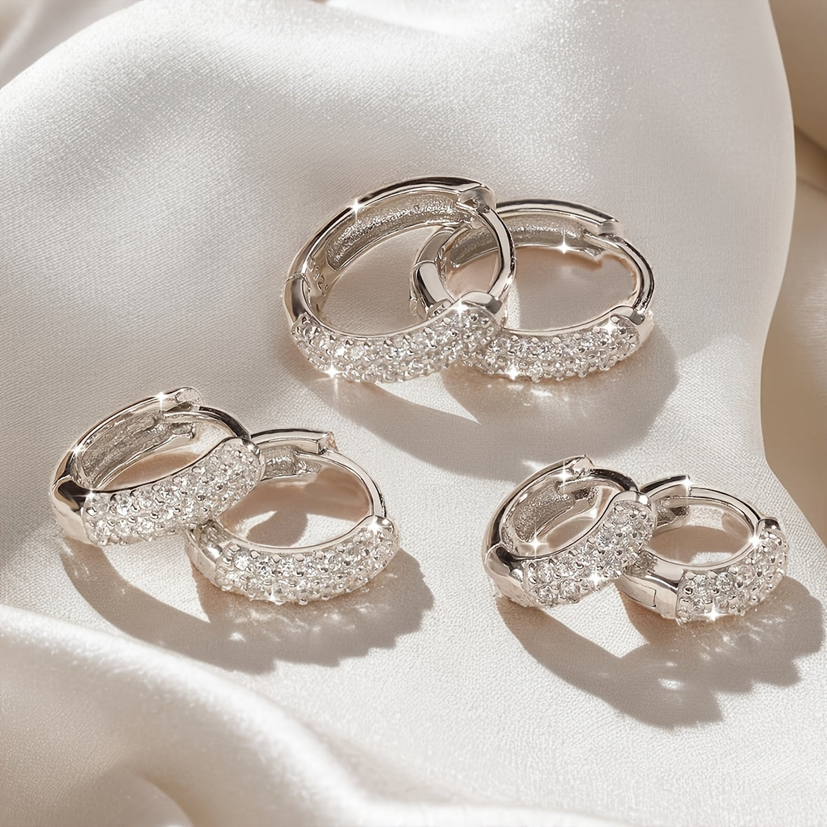 Add a touch of elegance to your daily outfits with these round wide sterling silver earrings inlaid with synthetic zirconia. Perfect for parties and banquets.