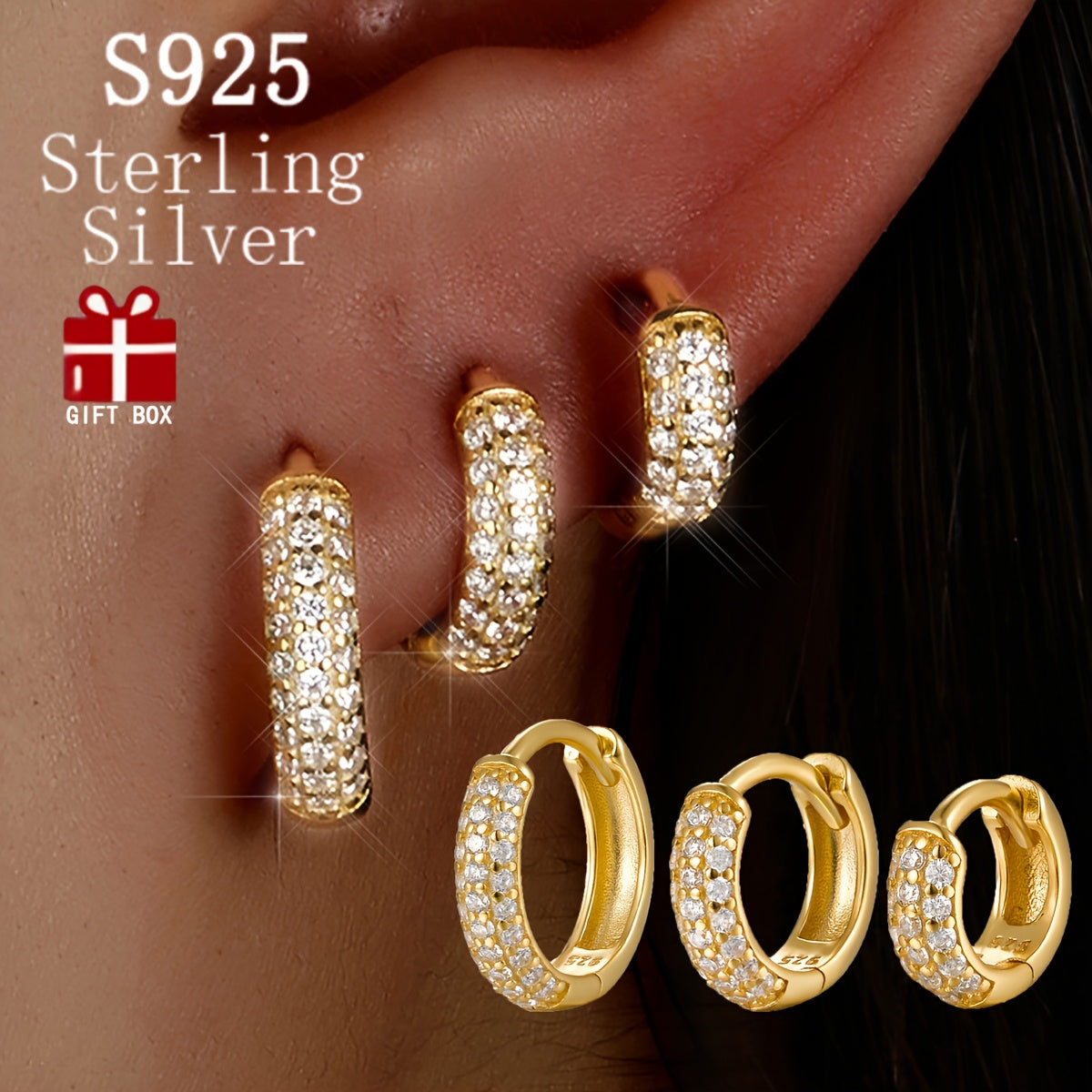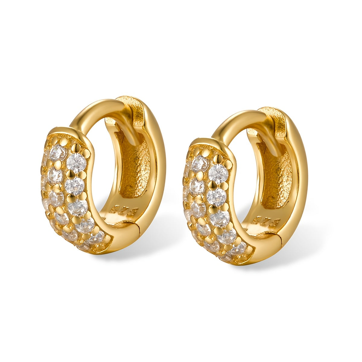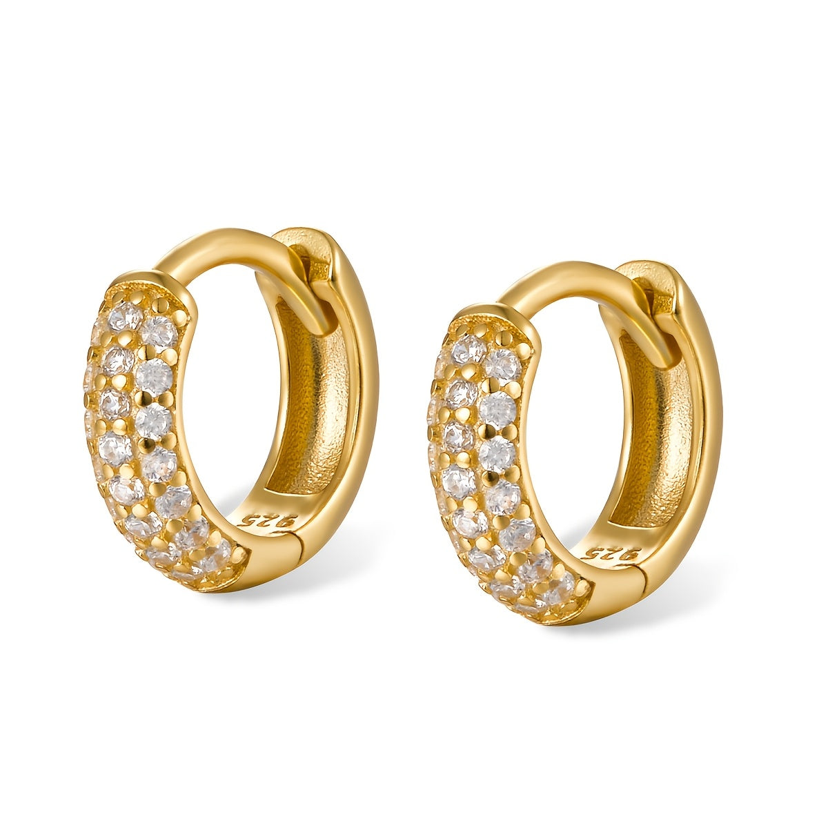 Add a touch of elegance to your daily outfits with these round wide sterling silver earrings inlaid with synthetic zirconia. Perfect for parties and banquets.