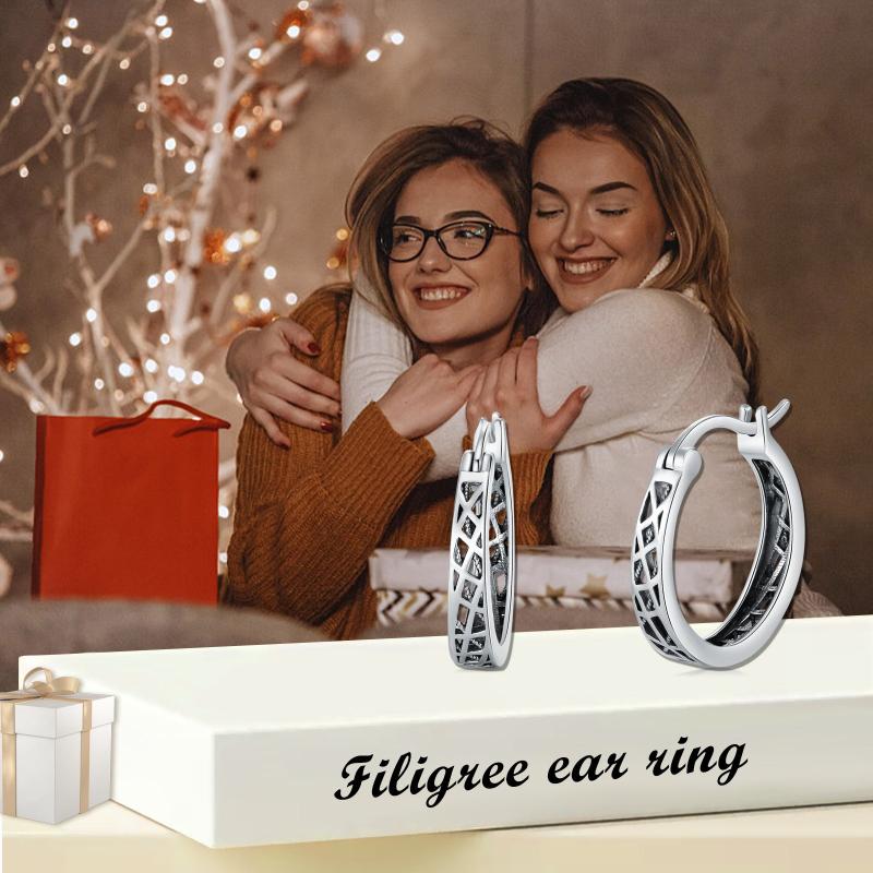 Vintage style openwork hoop earrings with a click top closure. Perfect Christmas gift for women.