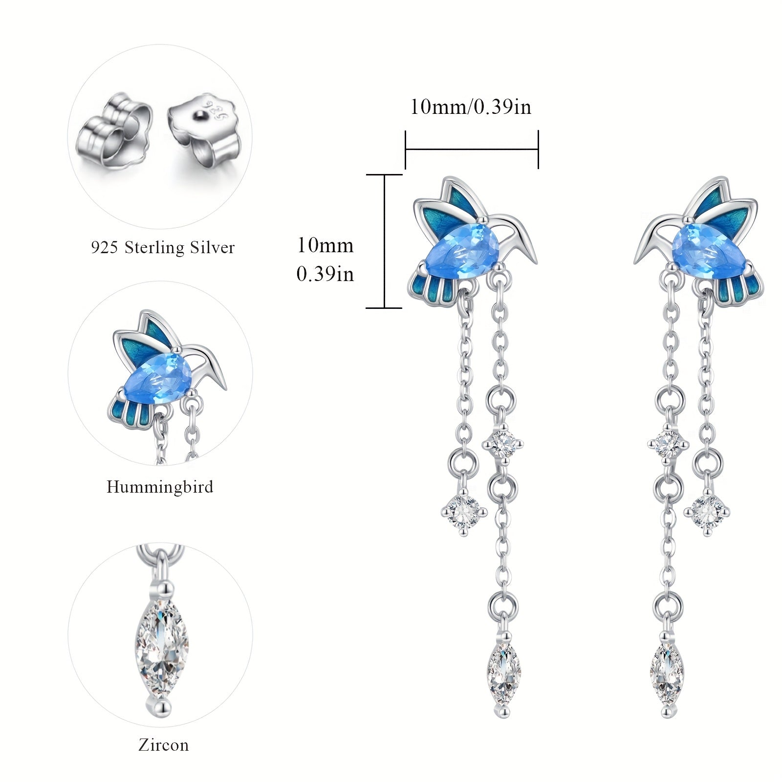 Adorn your ears with these elegant Hummingbird Studs Earrings crafted from 925 Sterling Silver. Perfect for bird lovers, these hypoallergenic earrings make a charming gift for women.