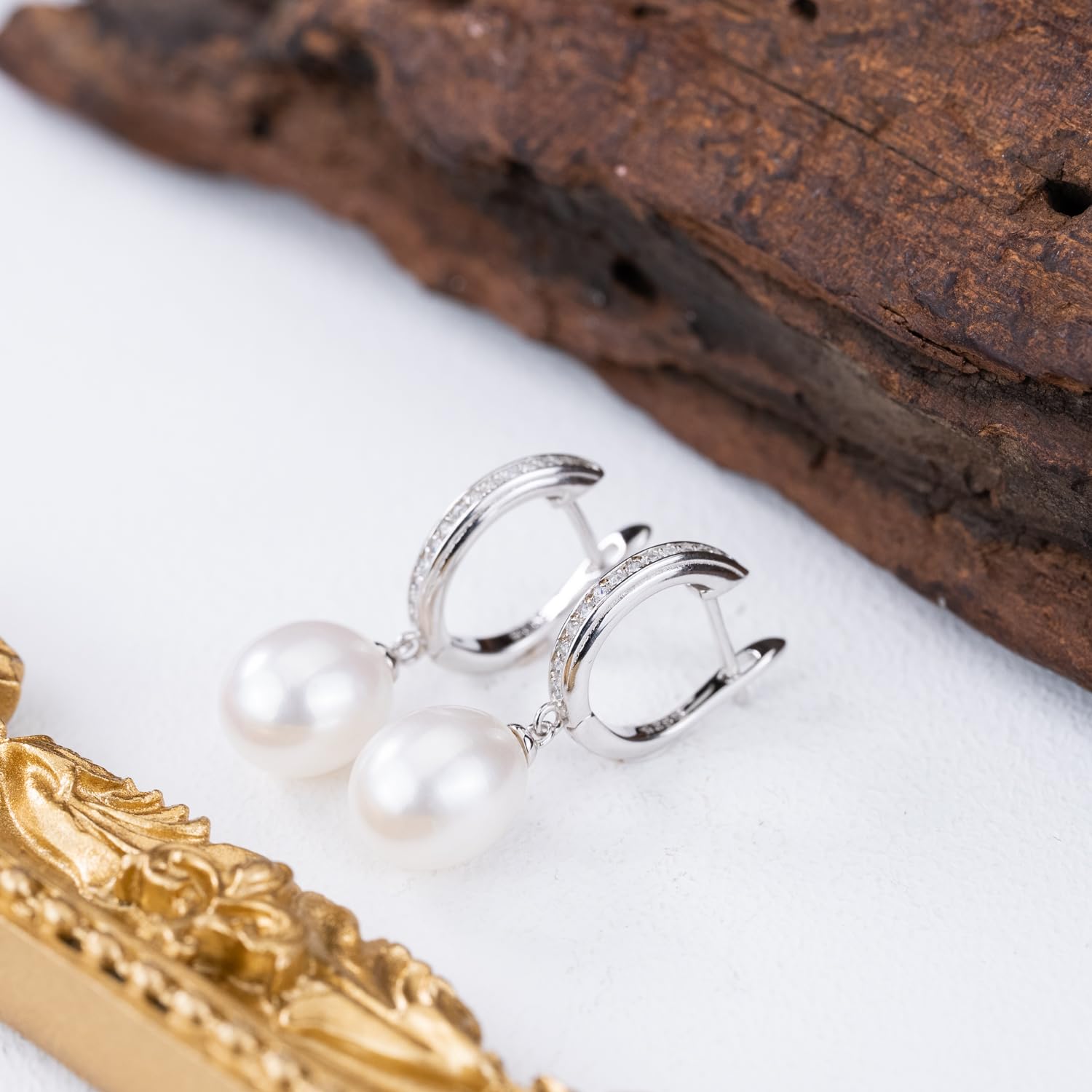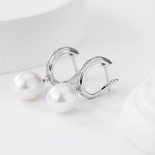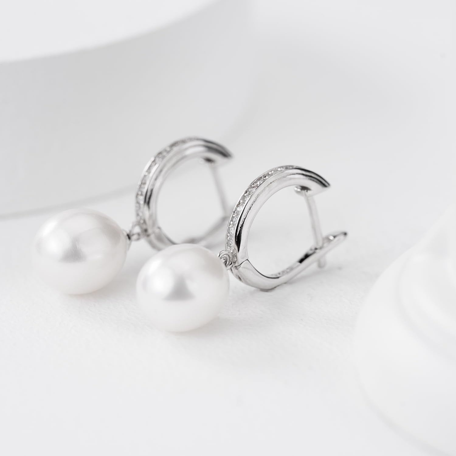 Add a touch of elegance to your look with these stunning sterling silver hoop earrings featuring freshwater pearls and zircon accents. Perfect for any occasion.