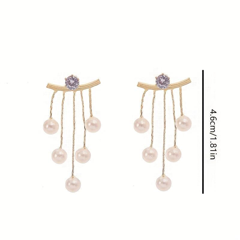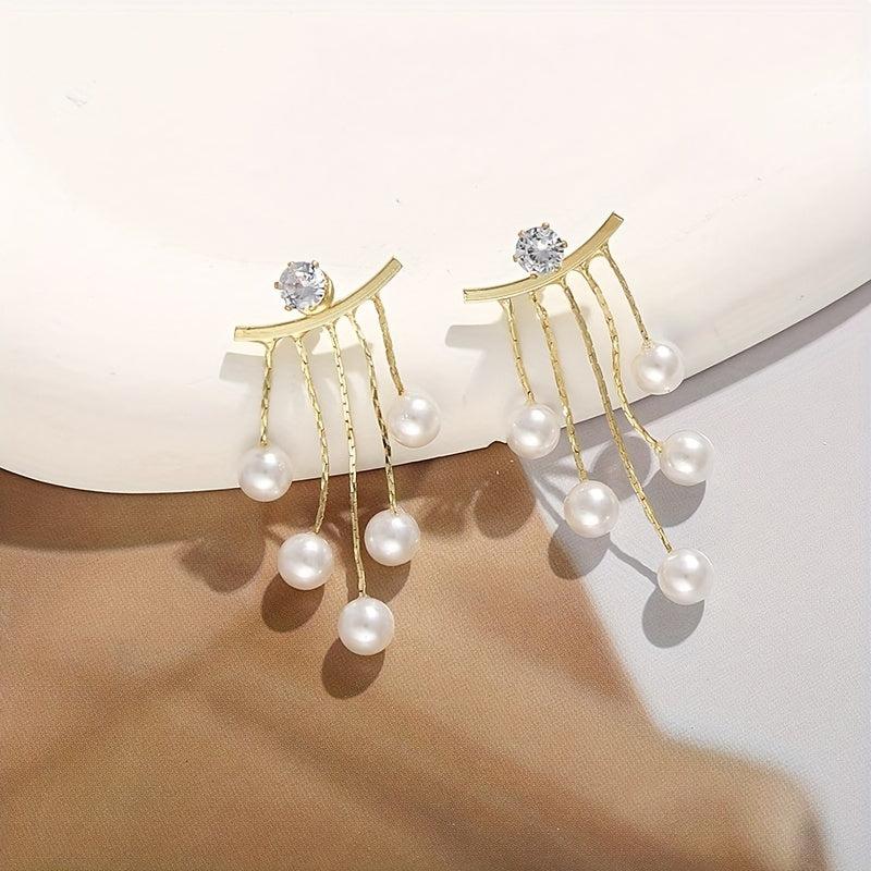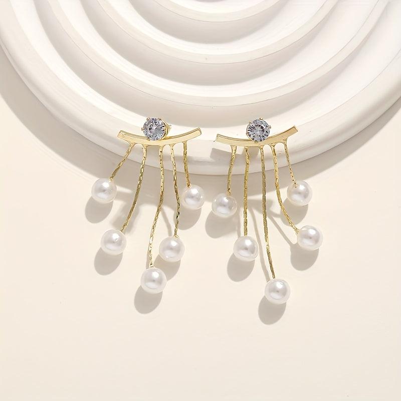 Elevate your style with these elegant imitation pearl tassel earrings featuring a sterling silver needle and alloy construction. Perfect for daily wear or party occasions.