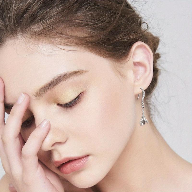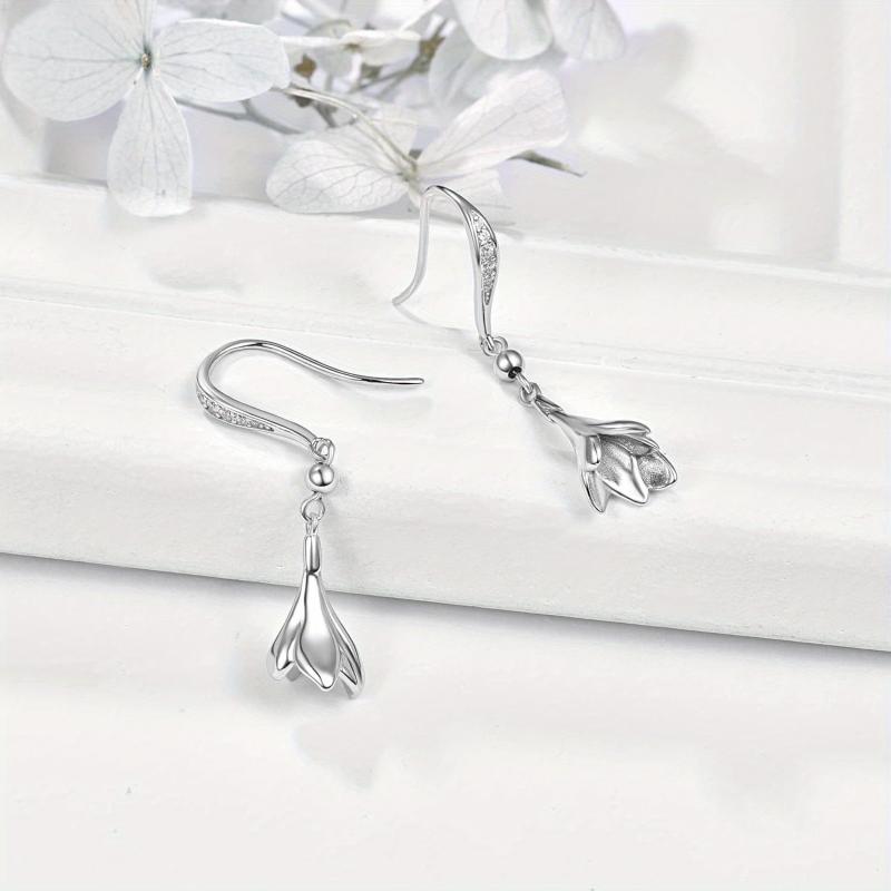 These elegant tulip earrings are made of sterling silver with a dainty design, perfect for any occasion.