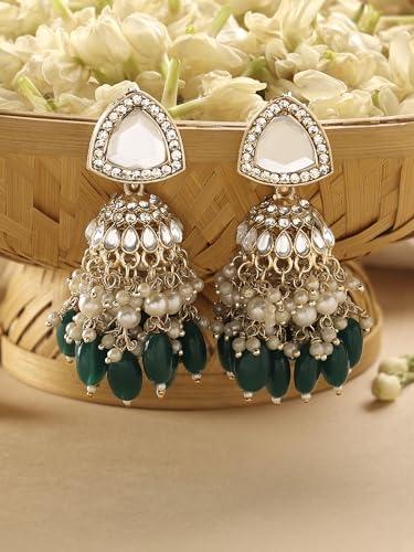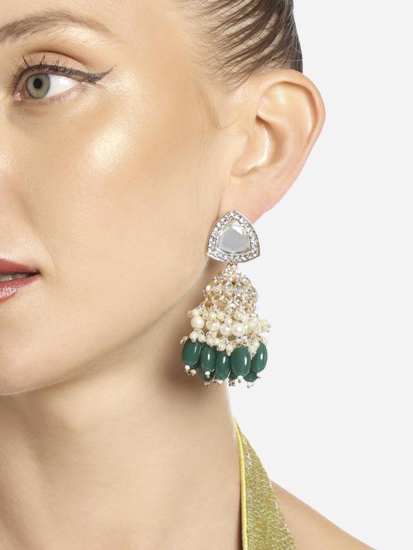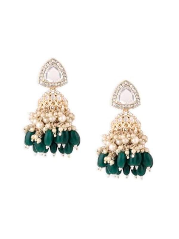 Elegant and stylish jhumka earrings with stones cluster beads design, perfect for women.