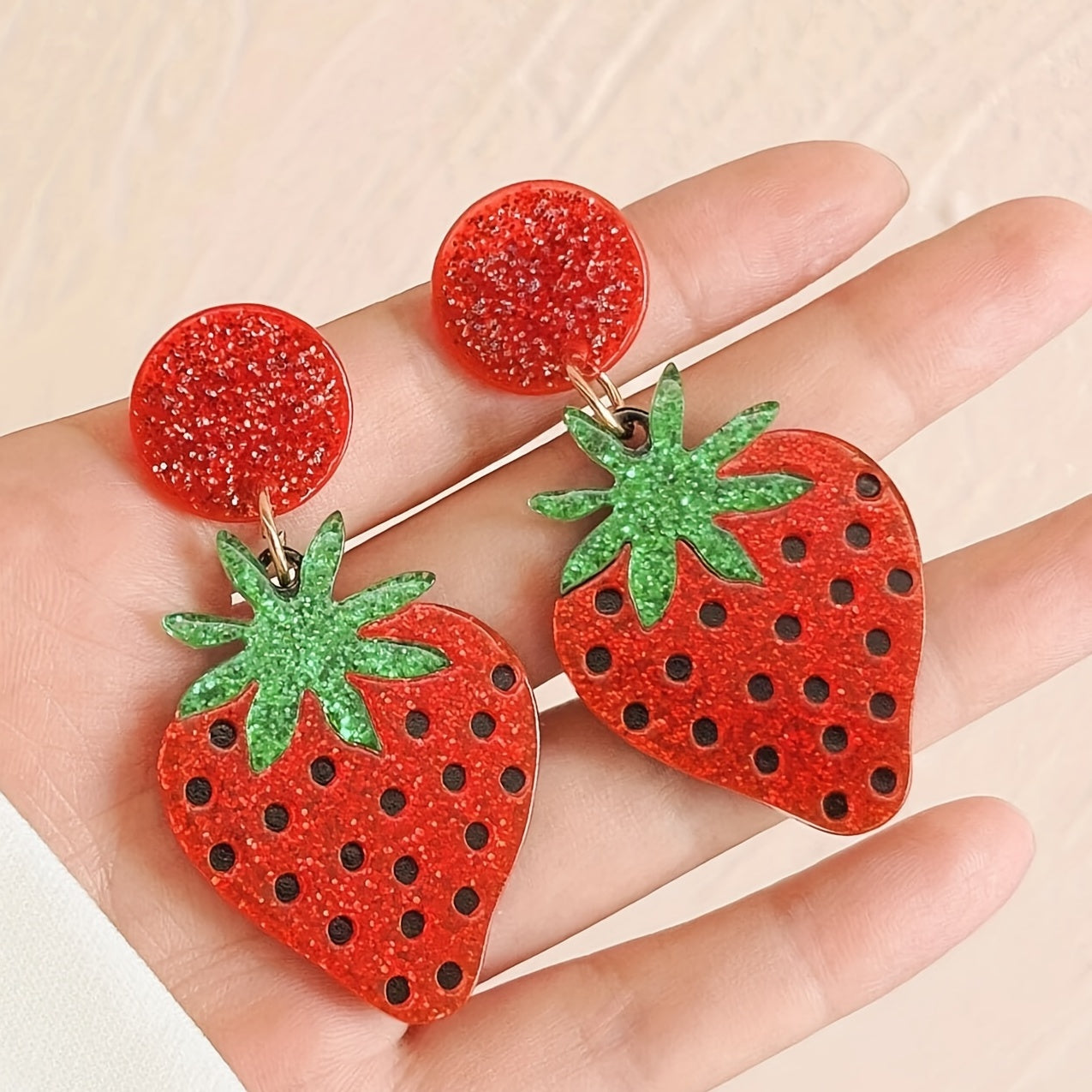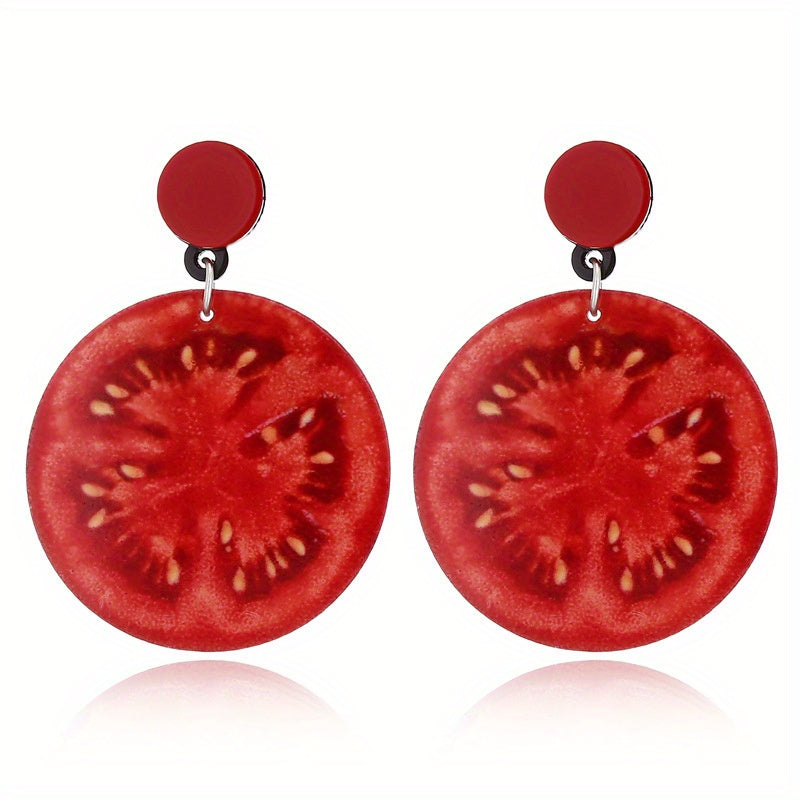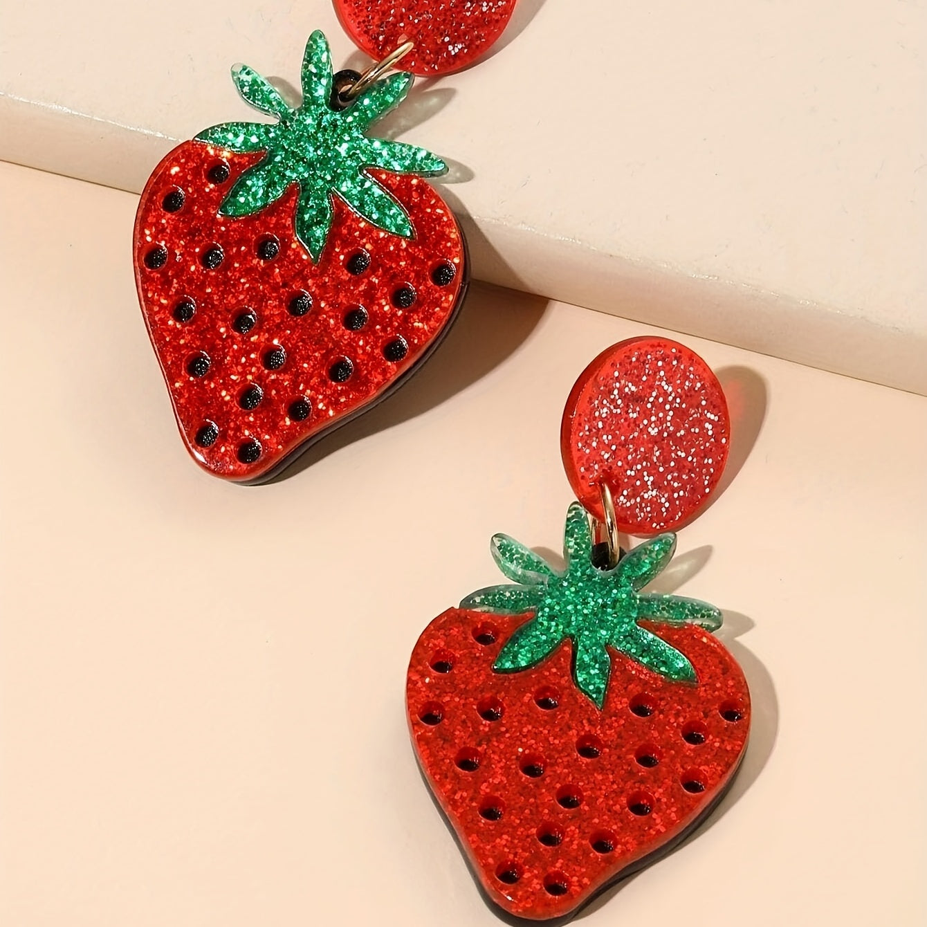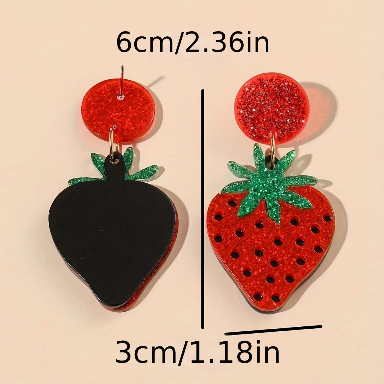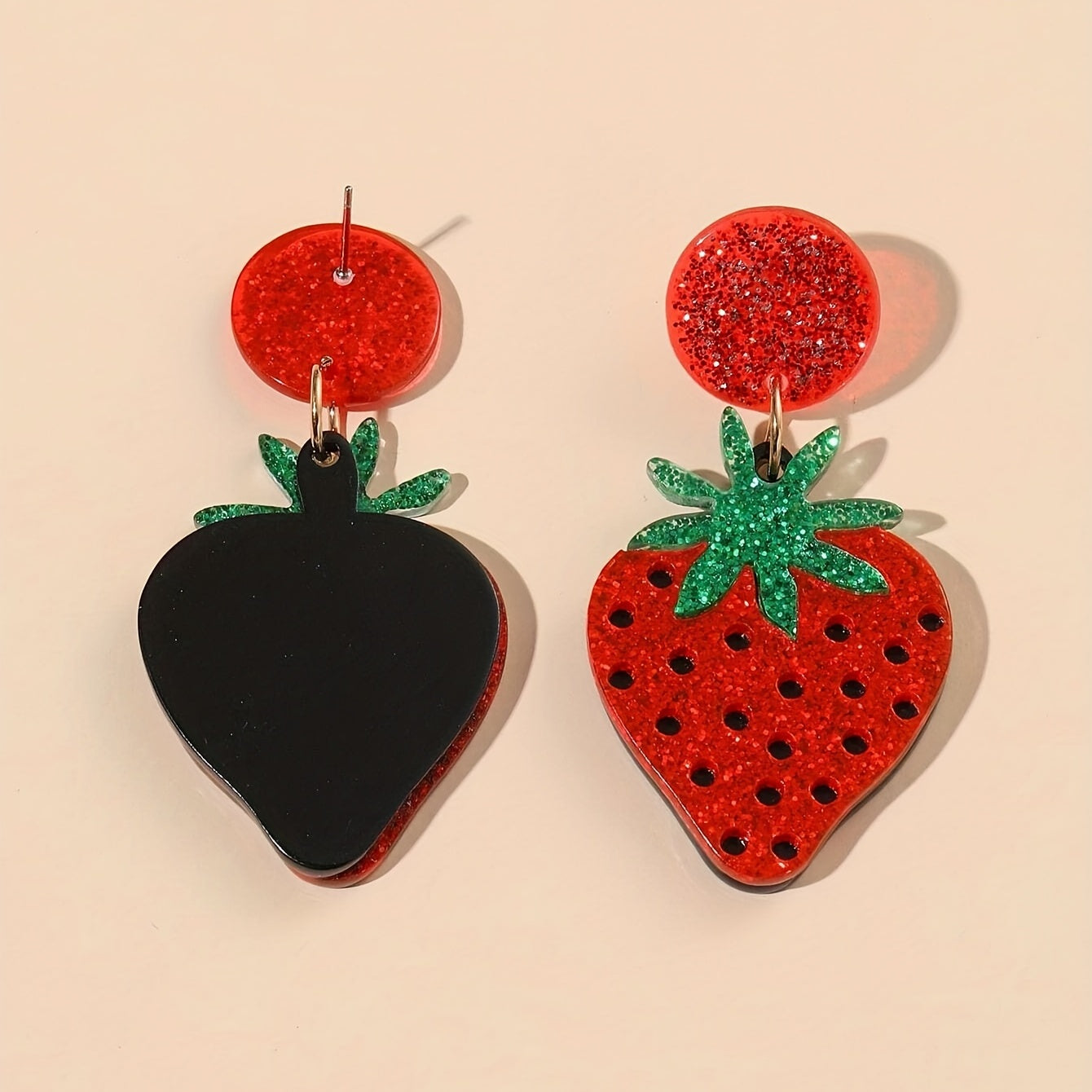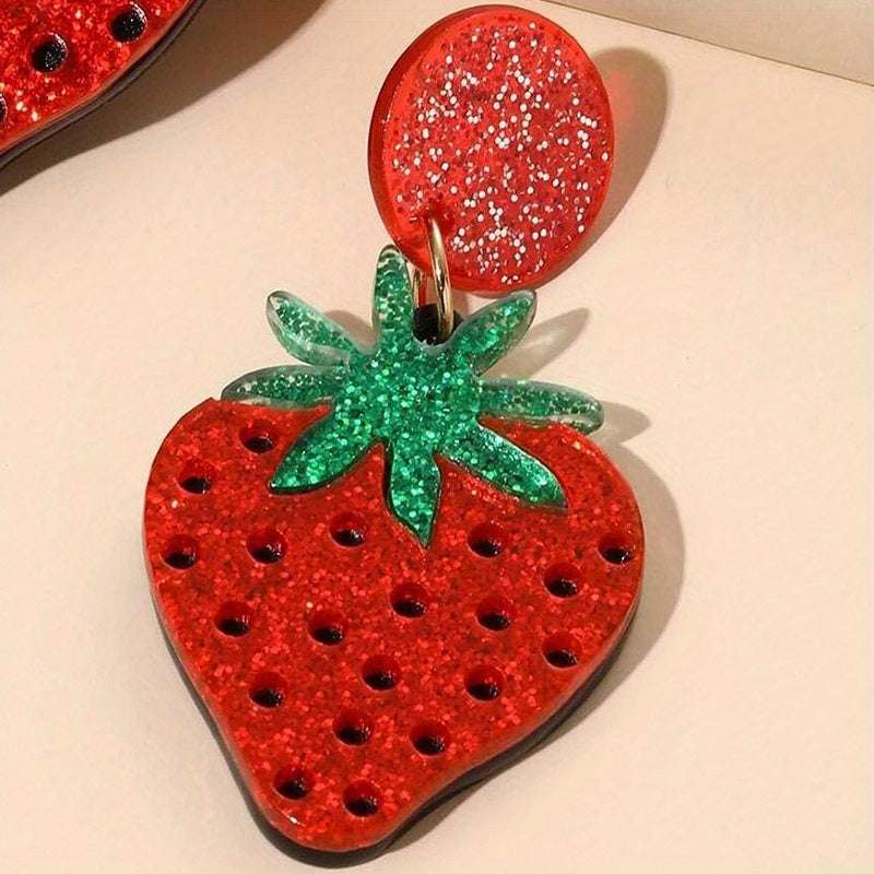 These adorable acrylic dangle earrings feature realistic strawberry design. Perfect gift for fruit lovers!