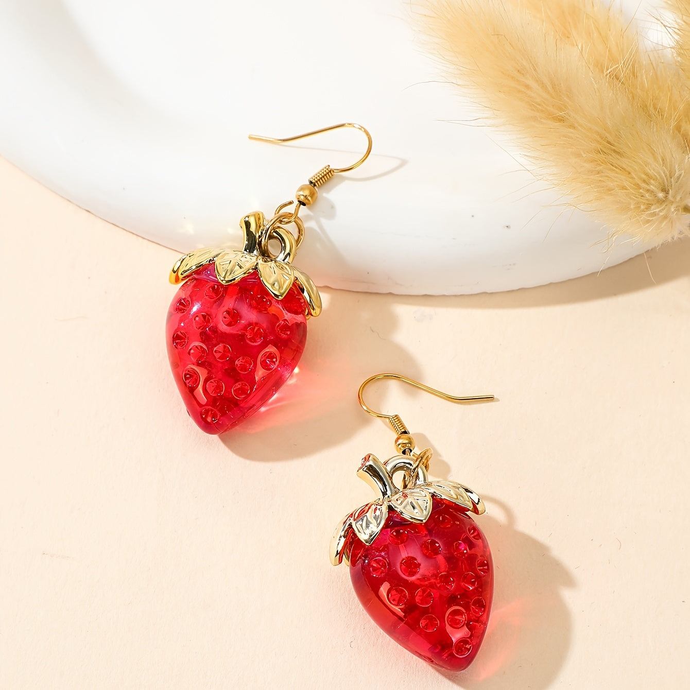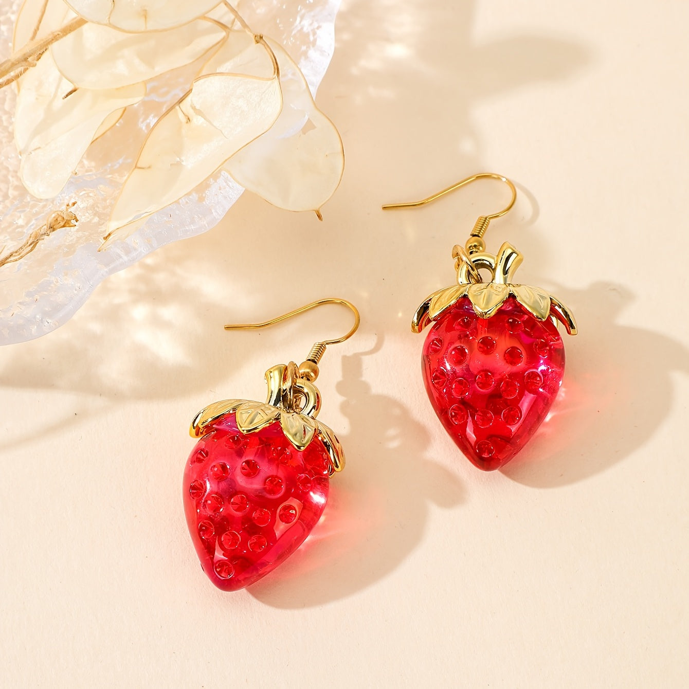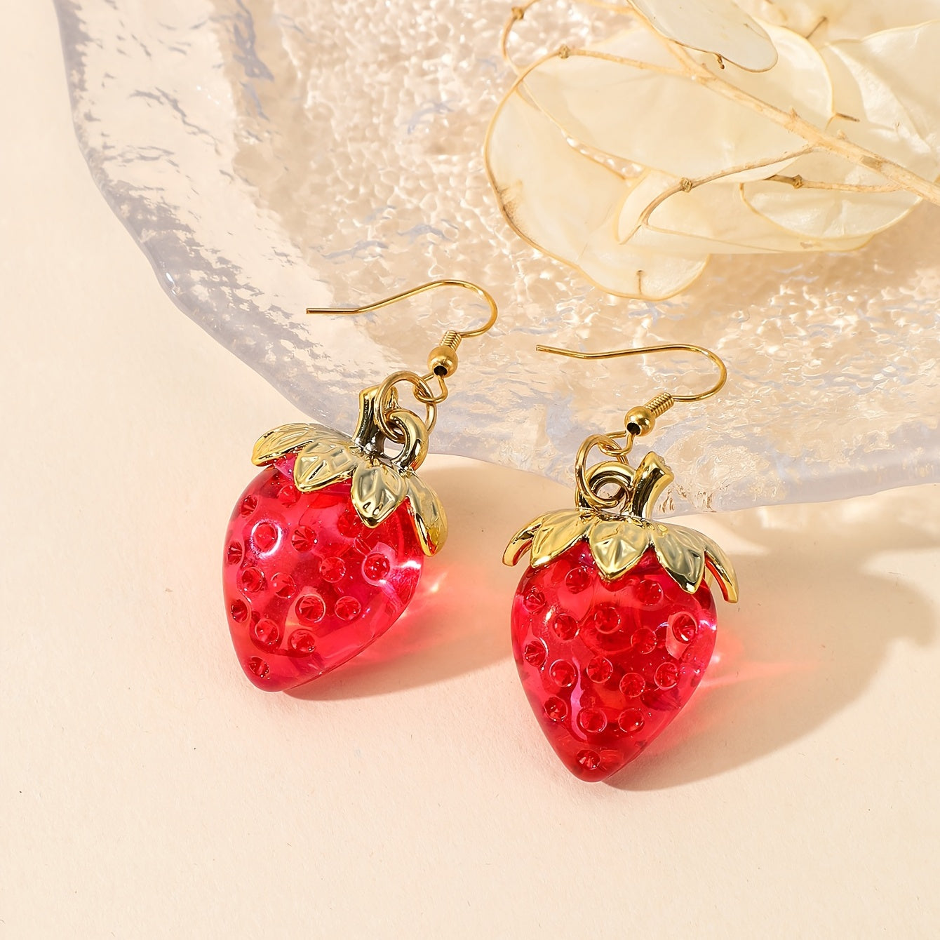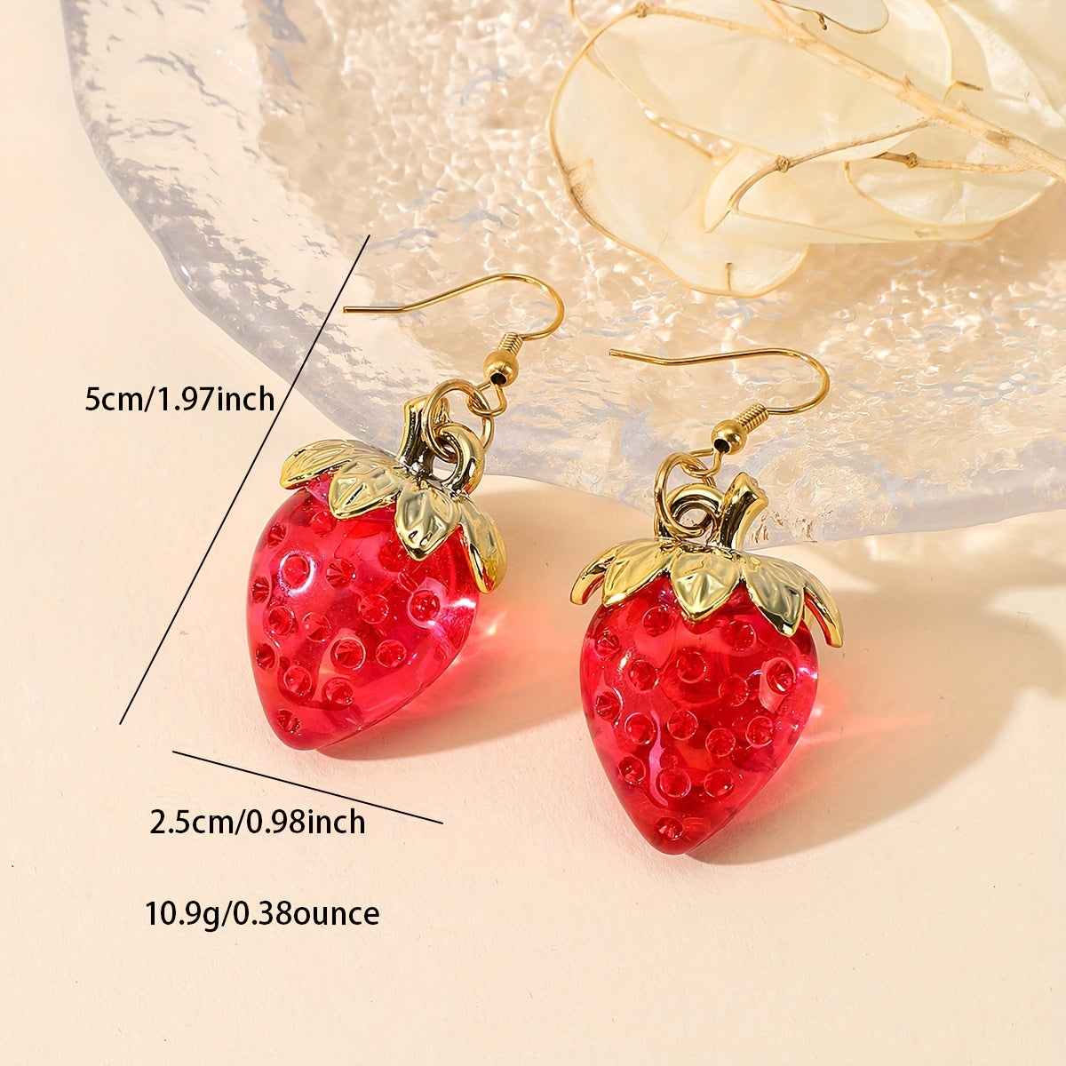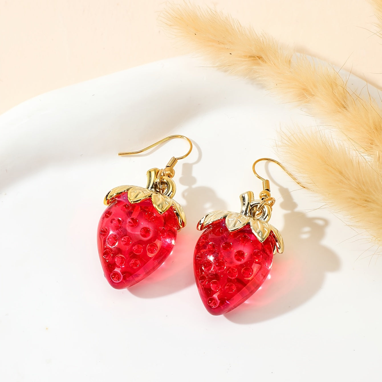 Add a sweet touch to your outfit with these adorable strawberry resin earrings. Perfect for women and girls who love fun and fruity accessories.