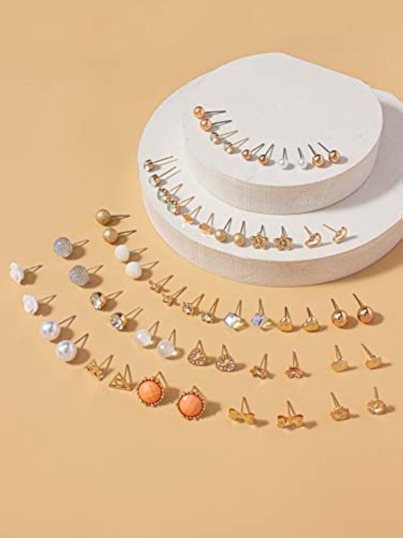 Elevate your style with this latest combo set of 30 pairs of earrings featuring a mix of crystal and pearl designs. Perfect accessory for any outfit.