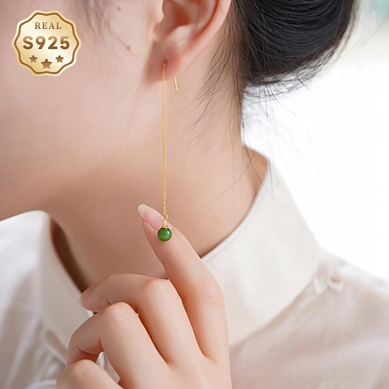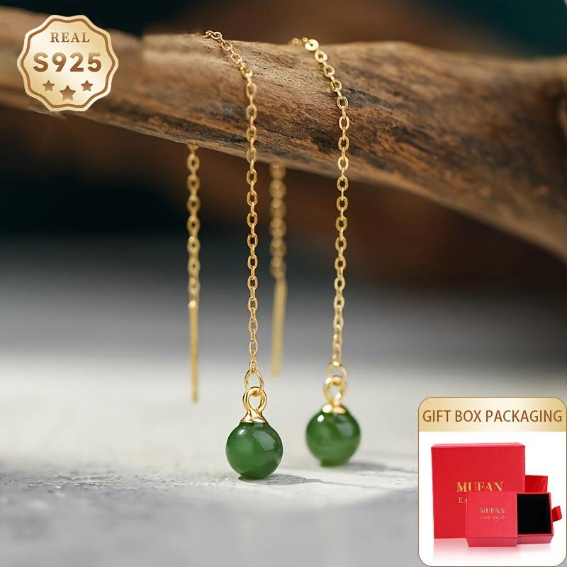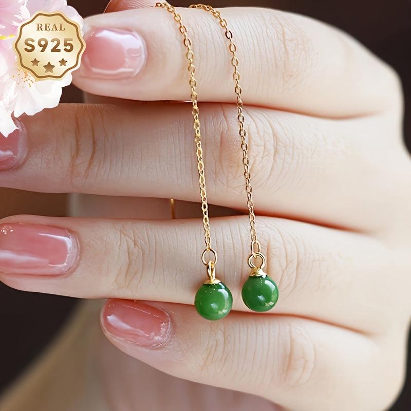 Add a touch of glamour to your look with these stylish drop earrings featuring 6-7mm green round natural stones set in S925 silver. These long earrings are perfect for both everyday wear and special occasions.