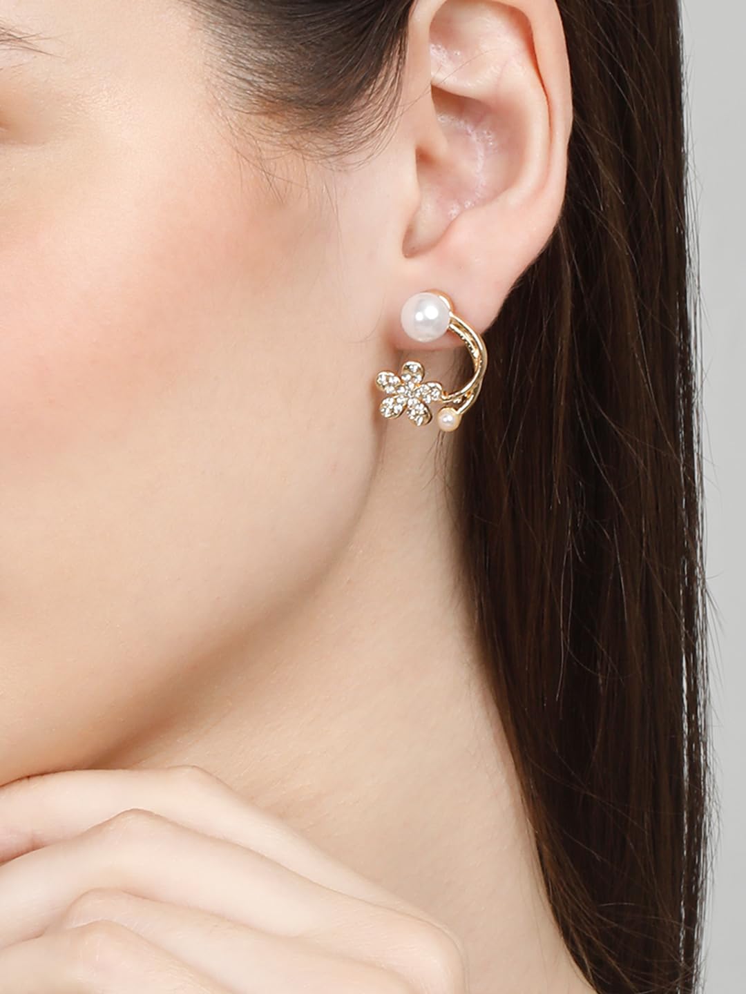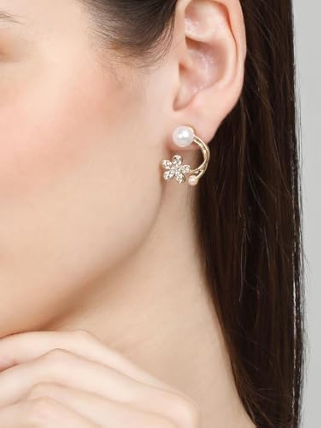 Elevate your style with these celebrity-inspired earrings featuring pearls and floral design. Perfect for adding a touch of glamour to any outfit.