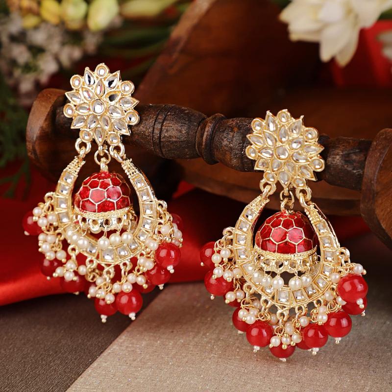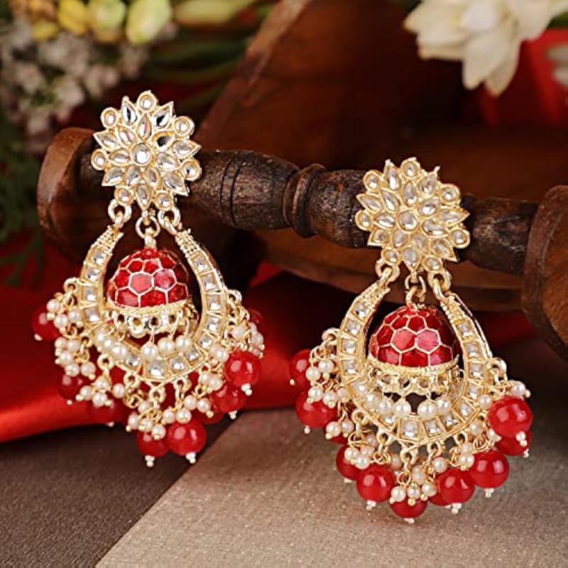 Elegant and beautiful Kundan earrings that add a touch of traditional charm to your outfit.