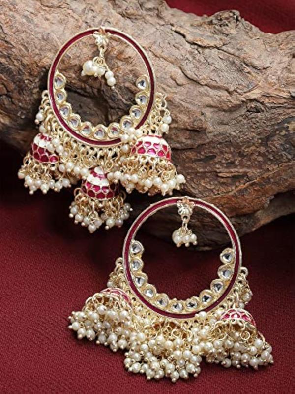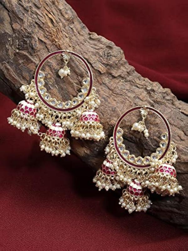 Elegant Kundan jhumka earrings that add a touch of traditional charm to your look.