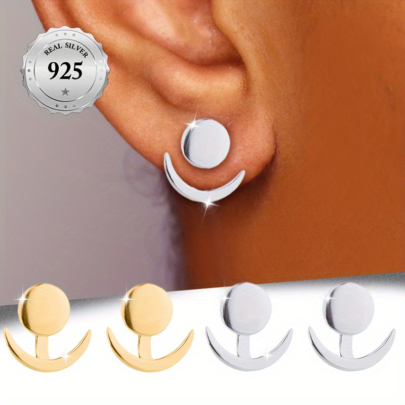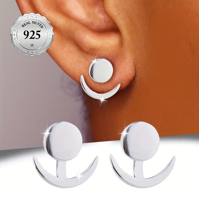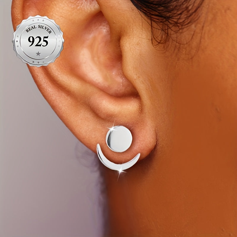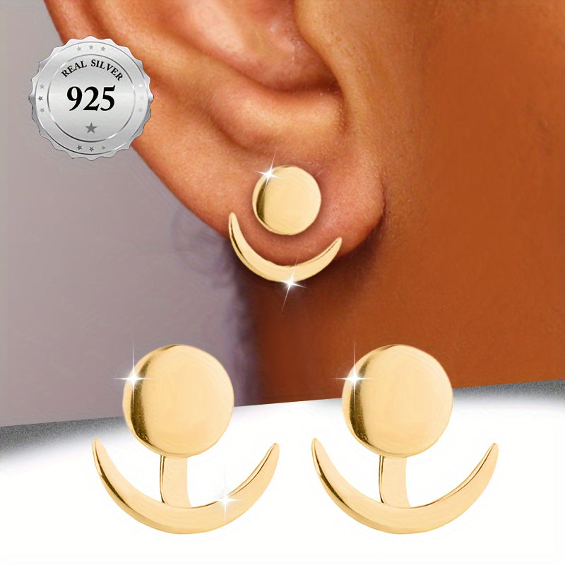 These stunning earrings feature a sun and moon design, perfect for adding a touch of celestial beauty to any outfit. Crafted from high-end S925 silver, these earrings are adjustable and can be worn in an up or down style. Their classic and versatile design makes them a perfect accessory for any occasion.
