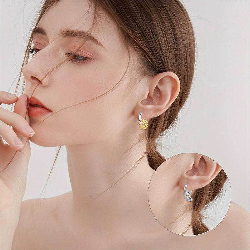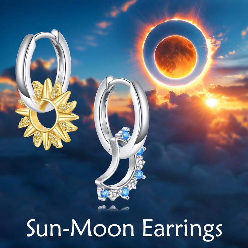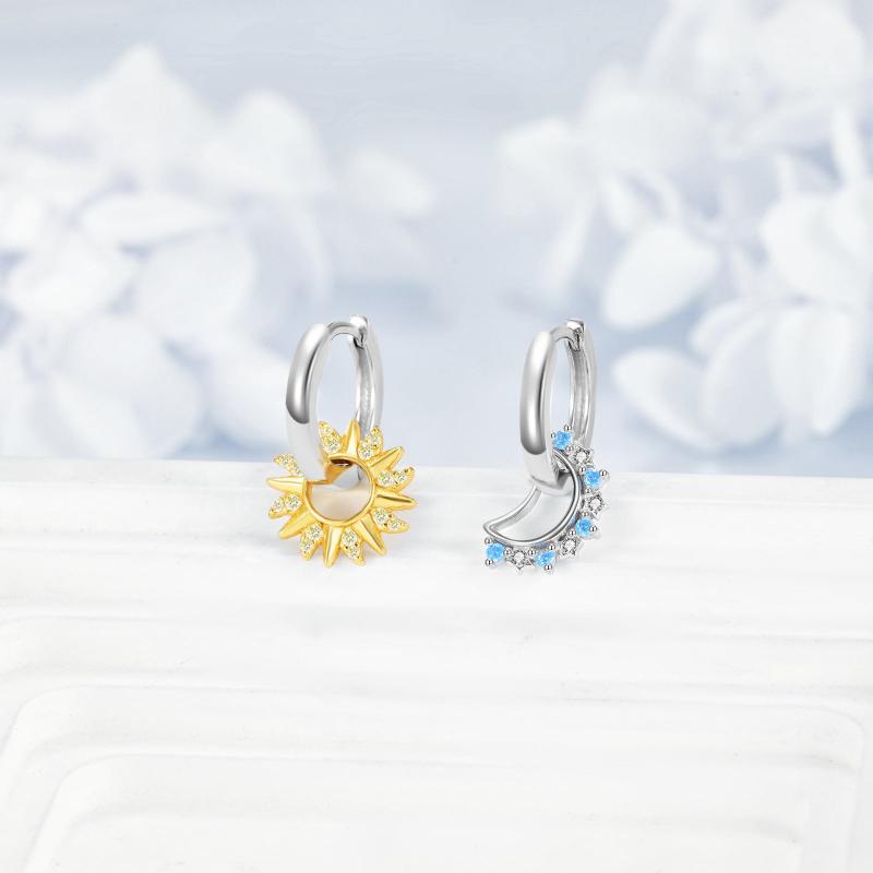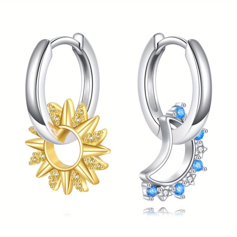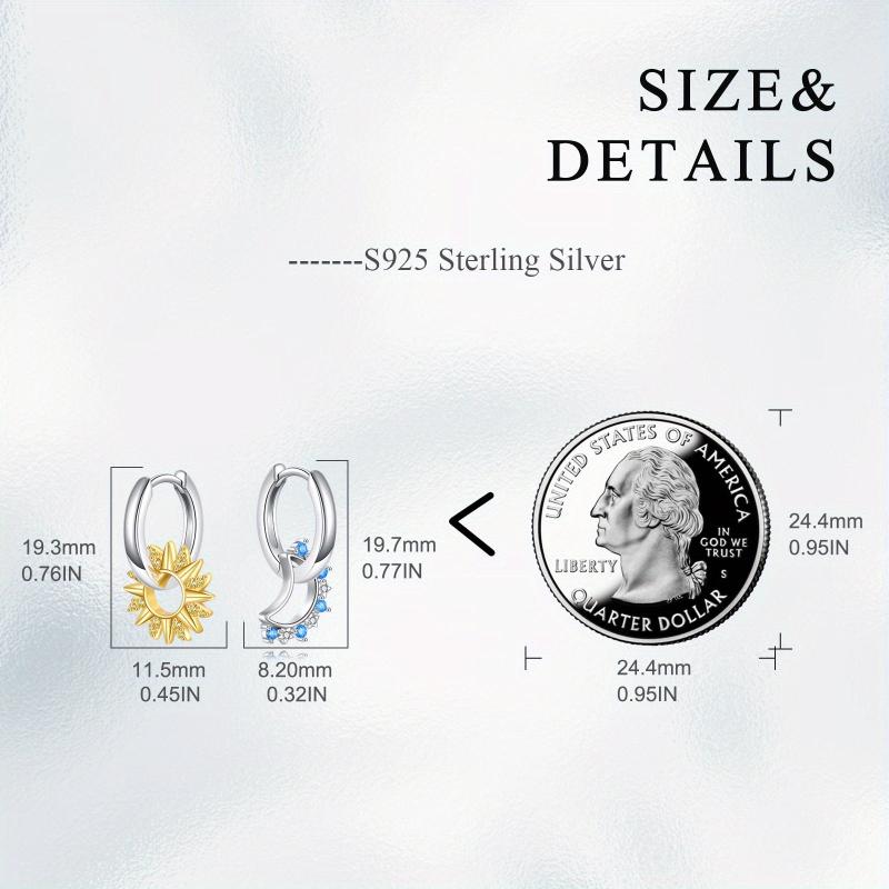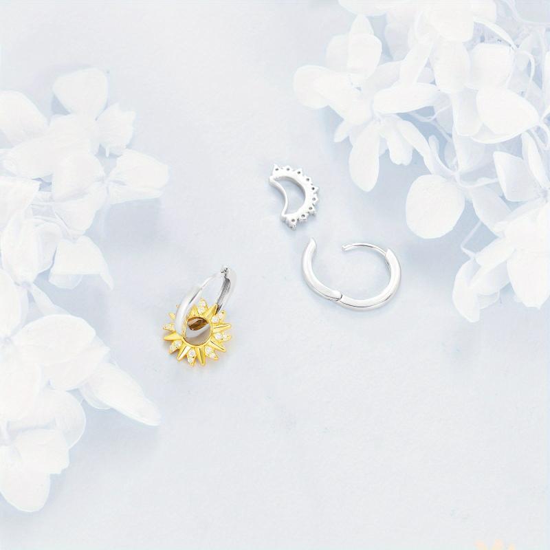 Elegant sun and moon hoop earrings crafted from 925 sterling silver with sparkling cubic synthetic zirconia. Perfect for adding a touch of celestial charm to any outfit.