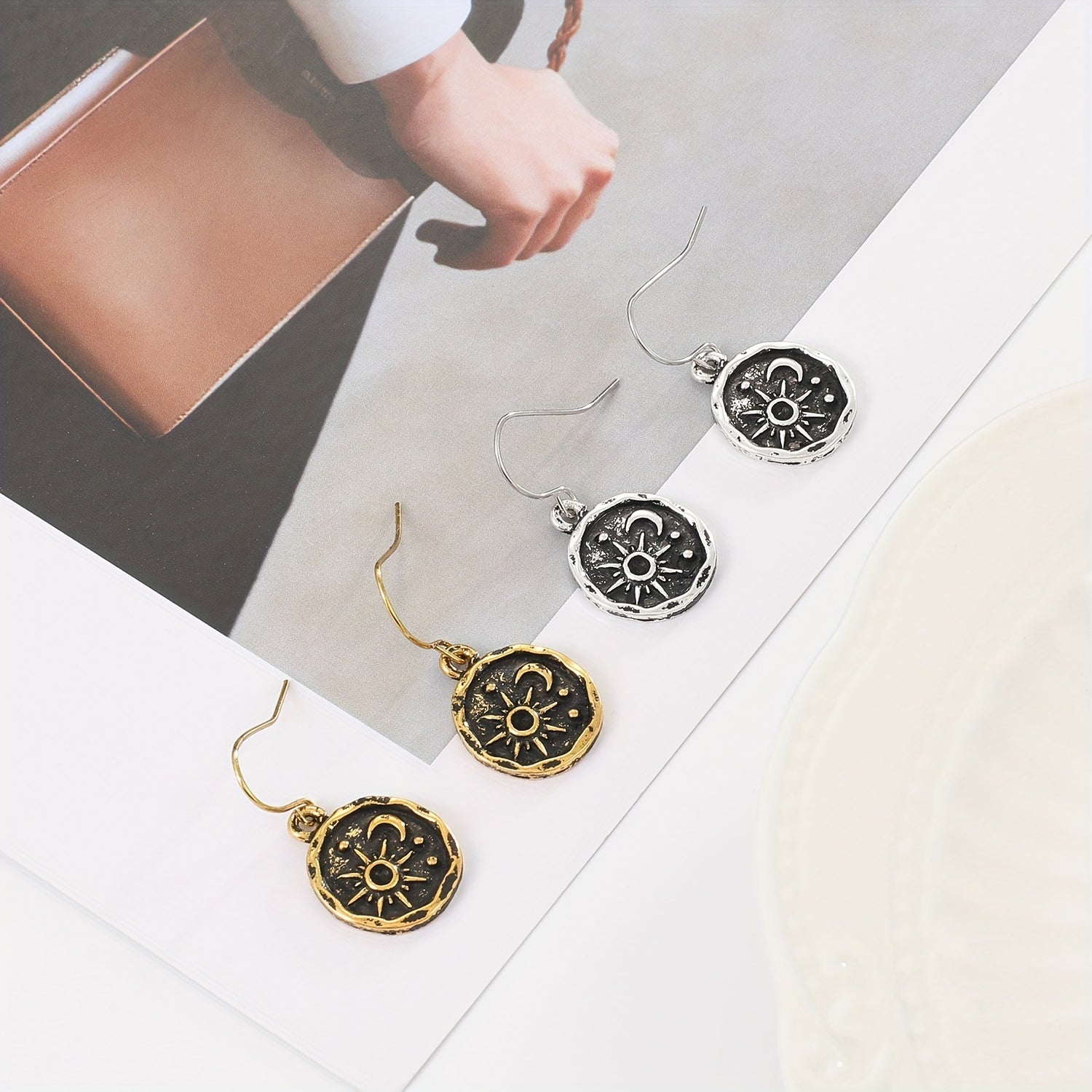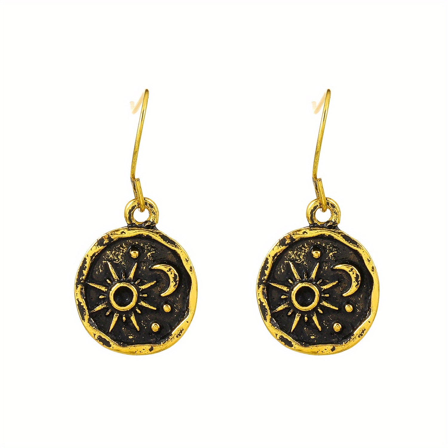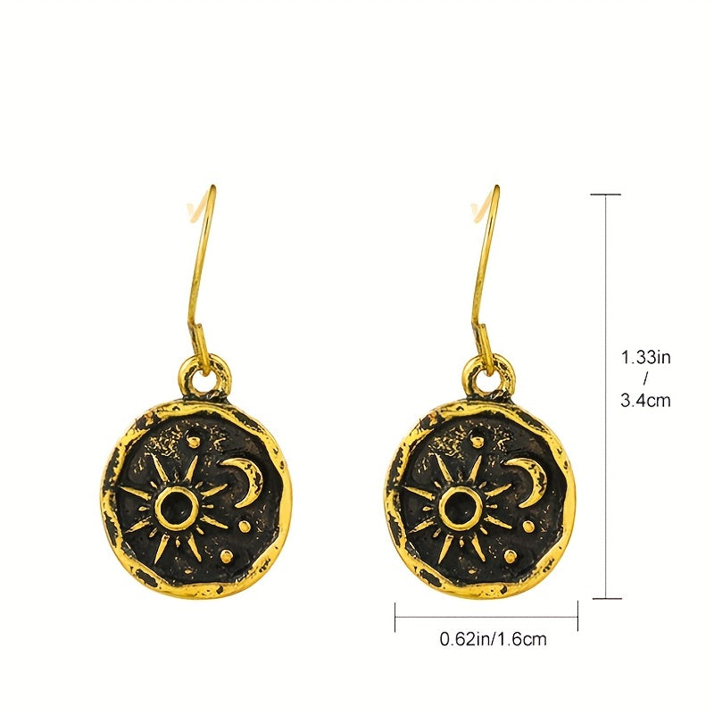 Add a touch of retro bohemian style with these sun and moon pattern dangle earrings. Made of high-quality alloy with 14K gold plating, they make a perfect gift for women.
