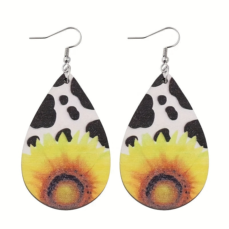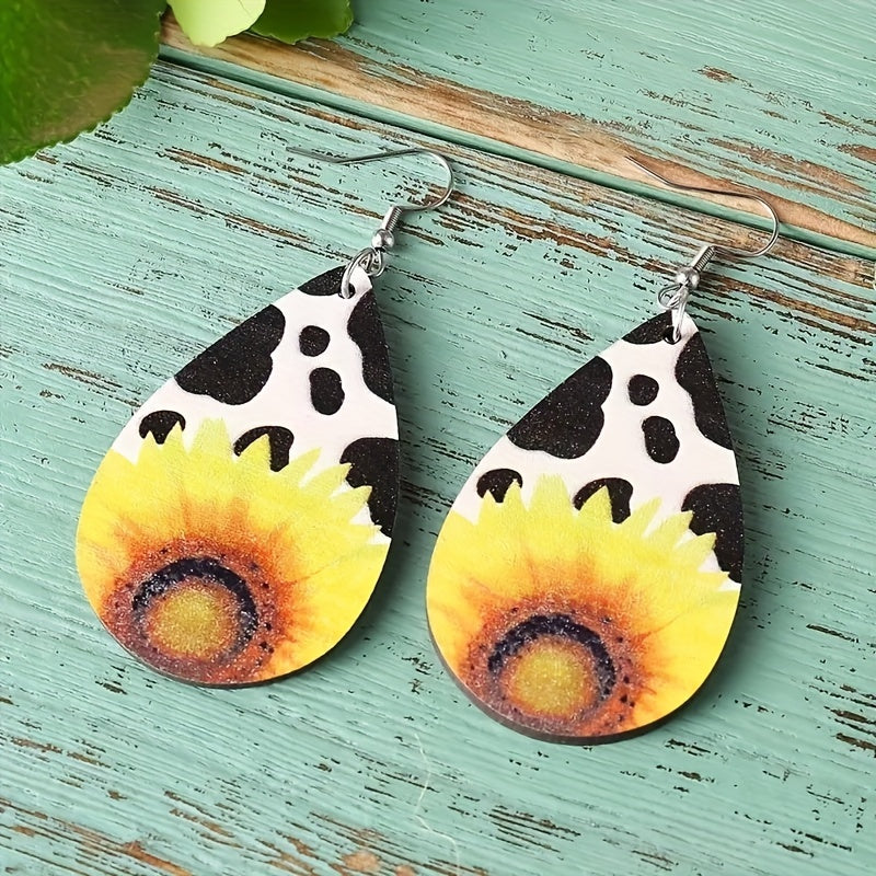 Add a touch of vintage charm to your look with these sunflower drop earrings. Water drop shape and hook design make them stylish and unique. Made of high-quality PU leather, these earrings are perfect for men.