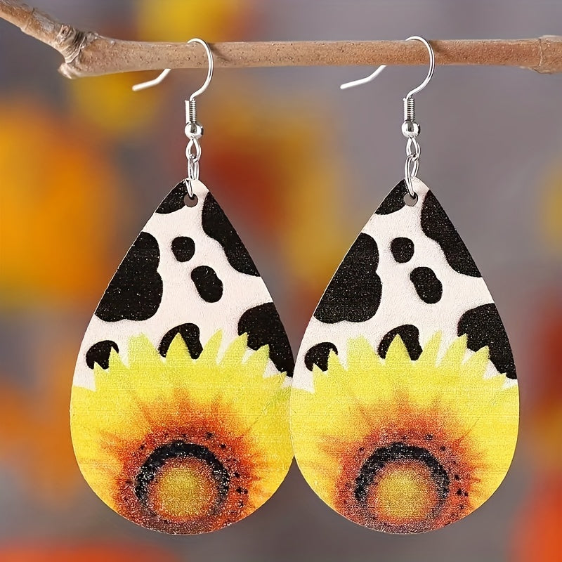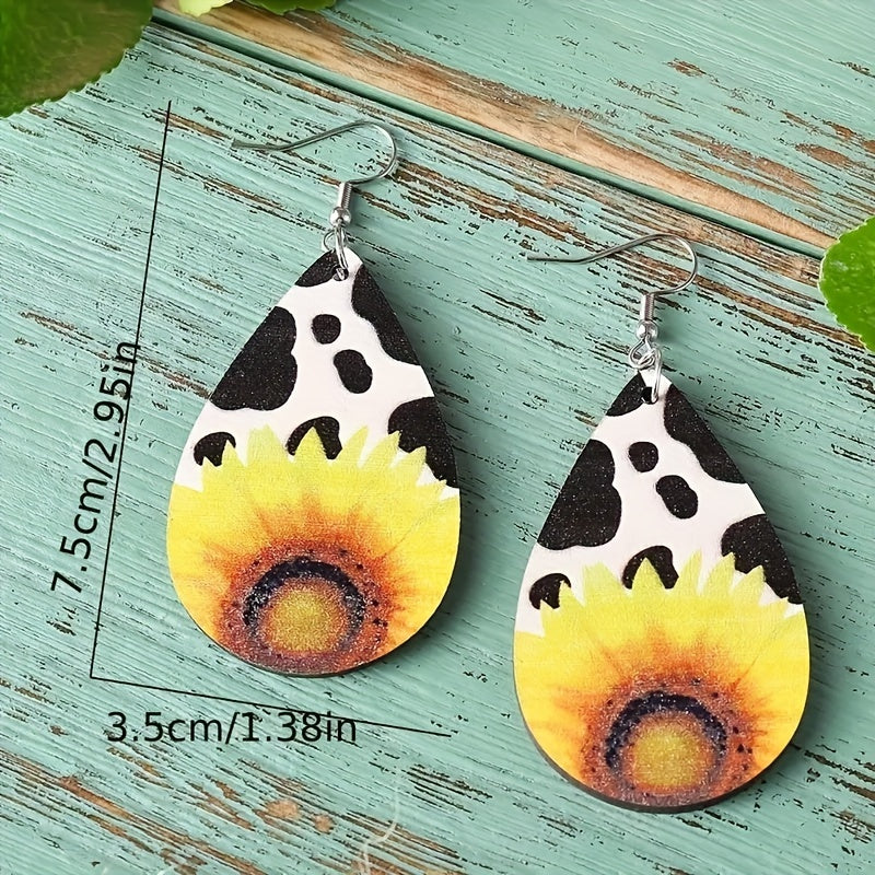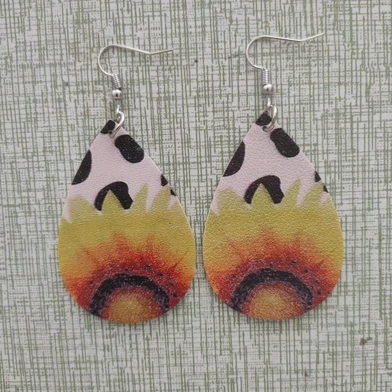 Sunflower Drop Earrings Vintage Style PU Leather Ear Jewelry