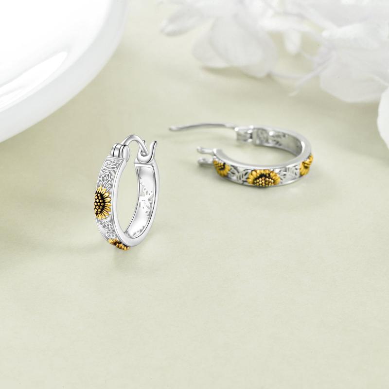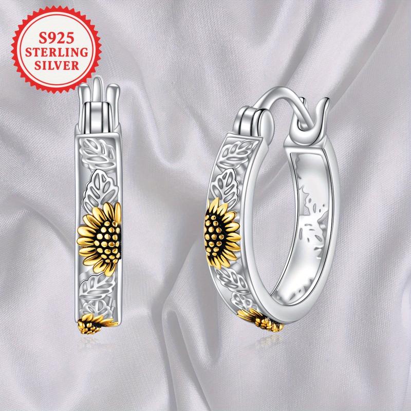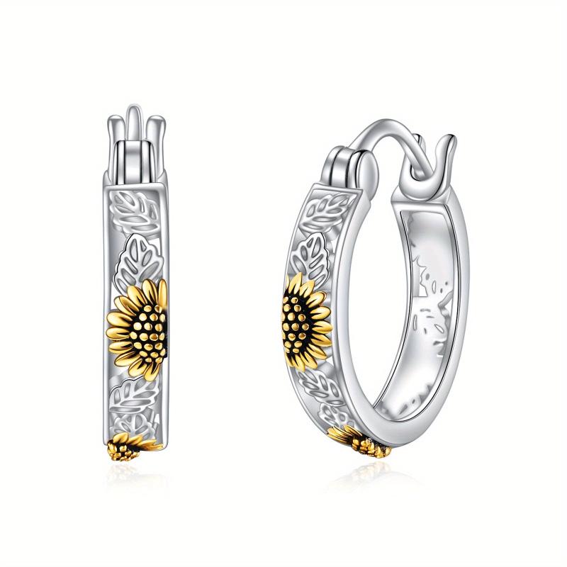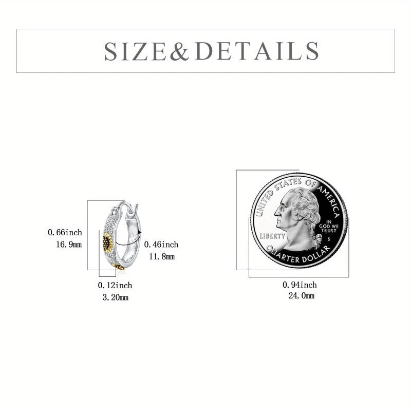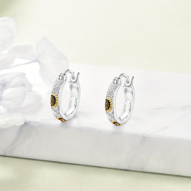 These sterling silver sunflower hoop earrings are a delicate and stylish accessory. They are perfect for daily wear or special occasions, making them a great gift for any woman.