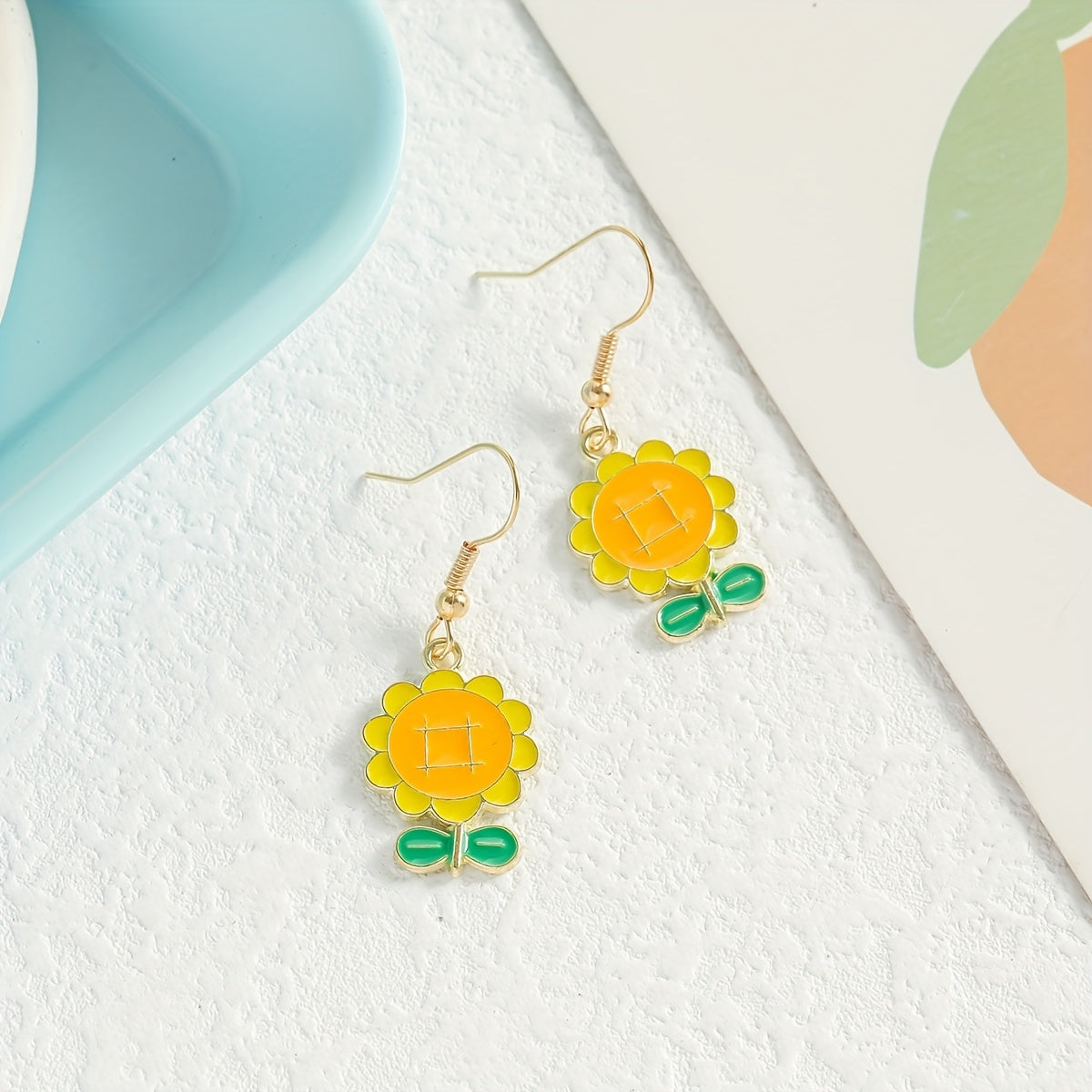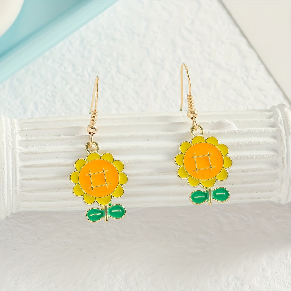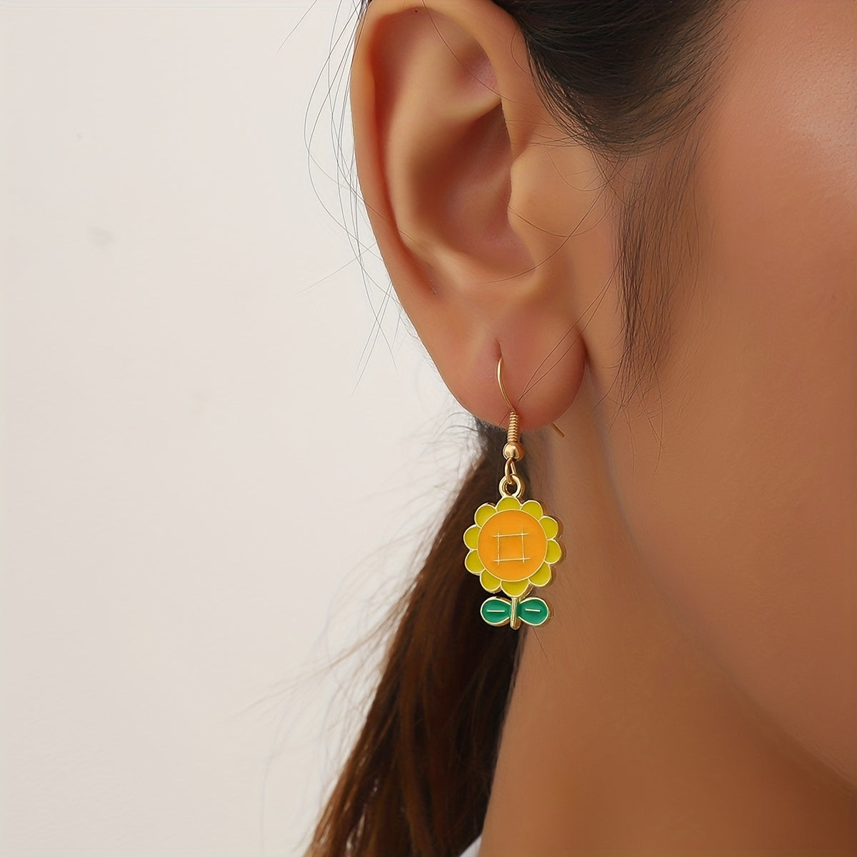 Beautiful sunflower pendant dangle earrings made of high-quality zinc alloy. Perfect for daily casual wear or as a thoughtful gift for women.