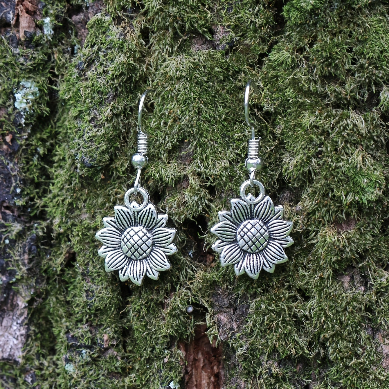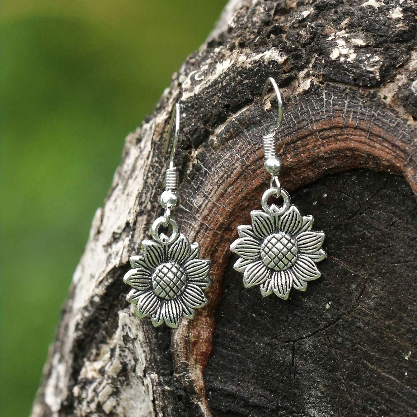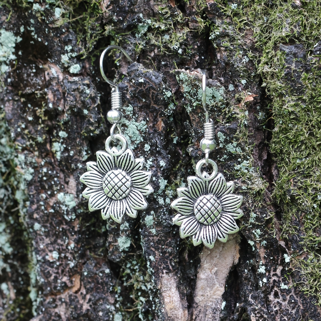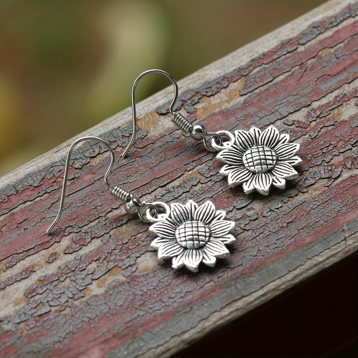 These retro sunflower dangle earrings are made of silvery zinc alloy, creating a delicate and beautiful accessory perfect for women and girls.