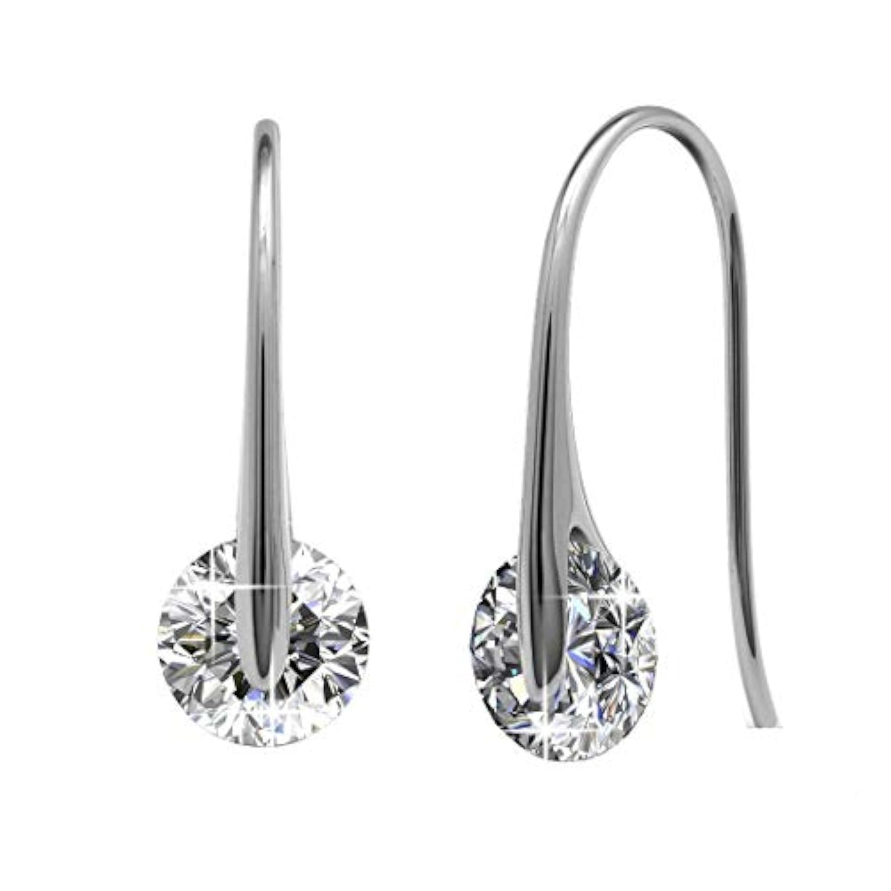 Swarovski Drop Hoop Earrings Silver Toned