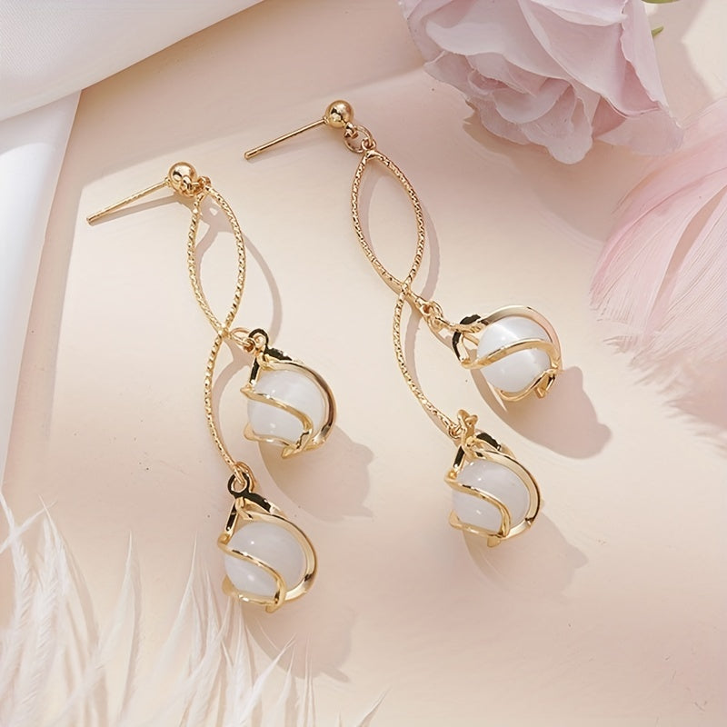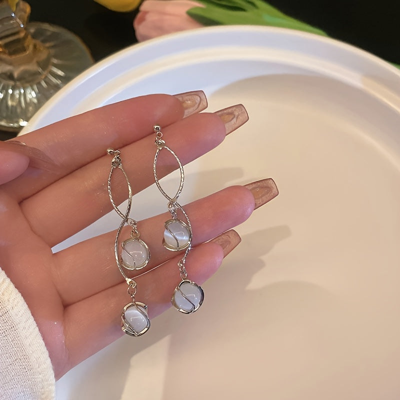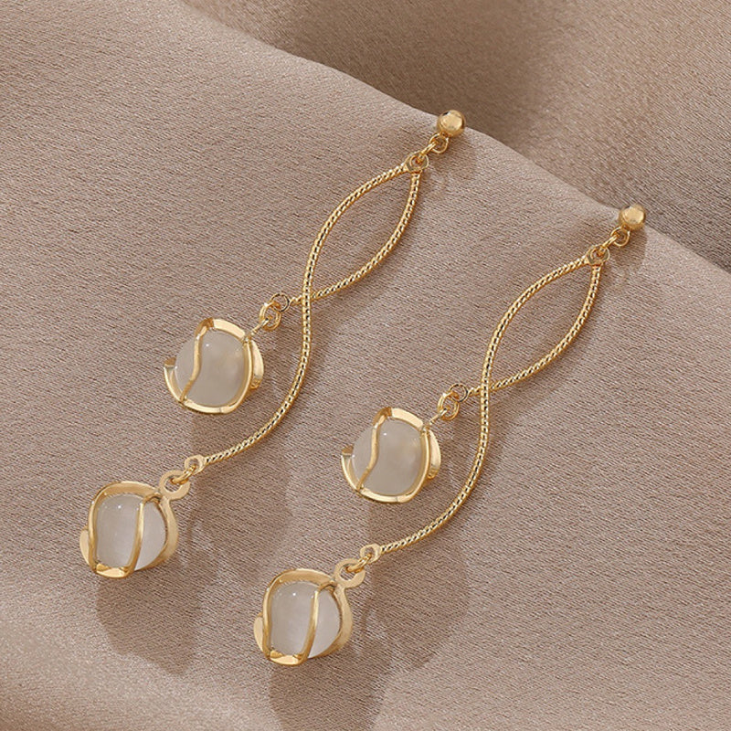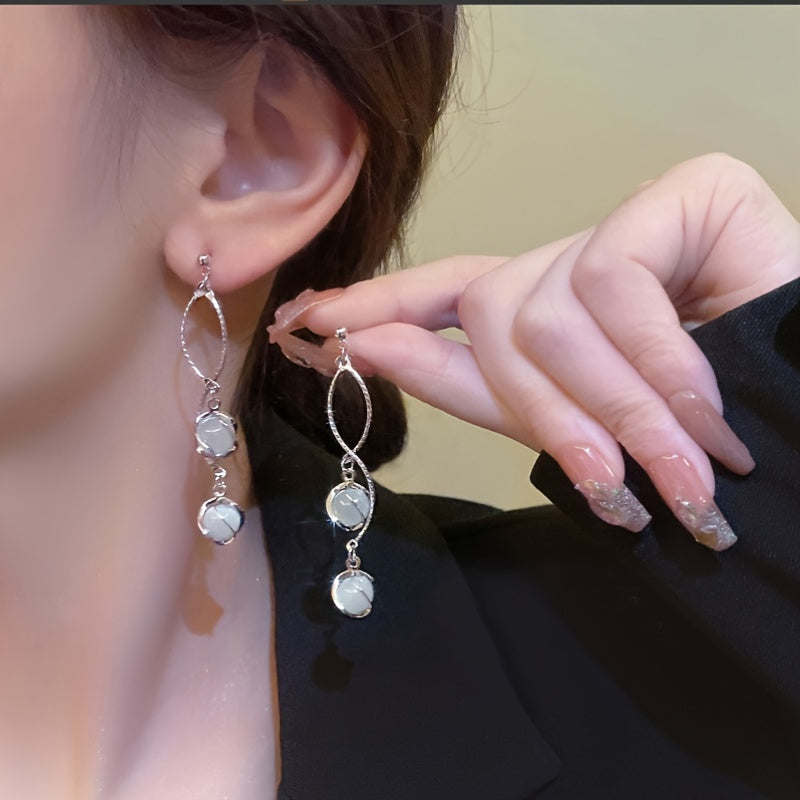 Enhance your style with these elegant tassel opal earrings, perfect for parties, banquets, and prom. Make a statement with these stunning accessories.