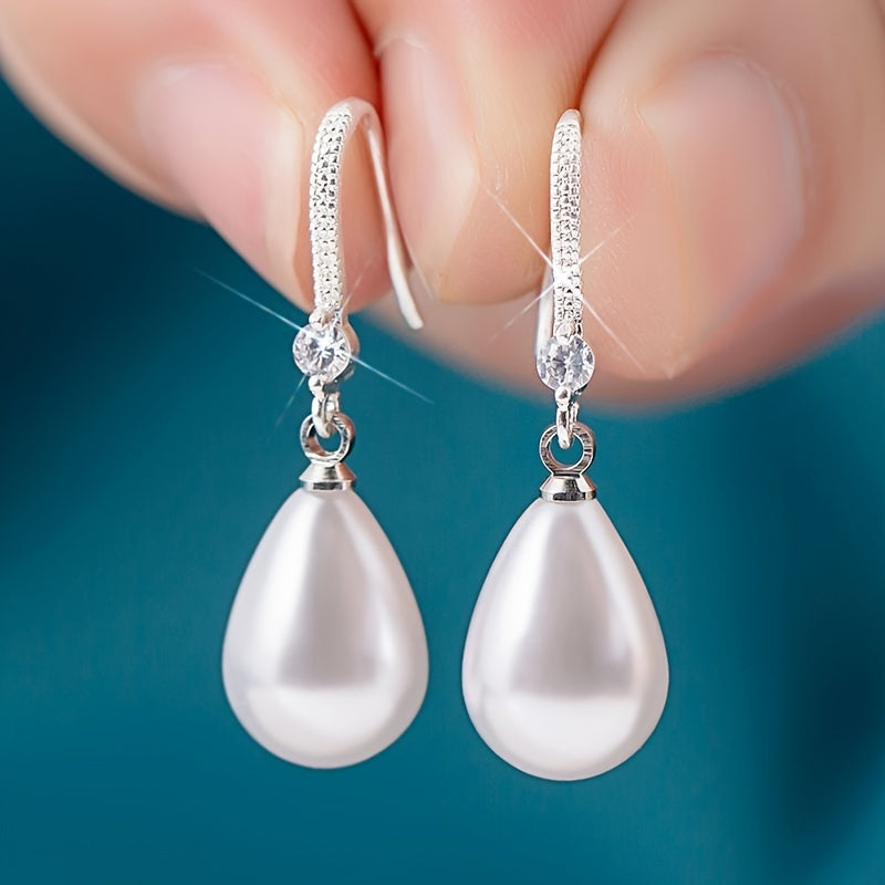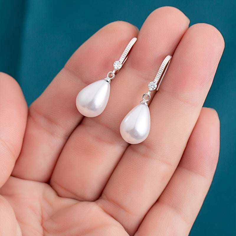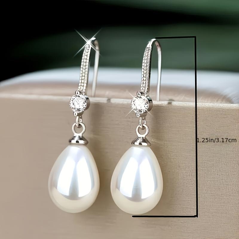 Add a touch of elegance to your look with these stunning Teardrop Faux Pearl Drop Earrings. Perfect for a birthday party or special occasion, these silver-plated earrings are a stylish addition to any outfit.