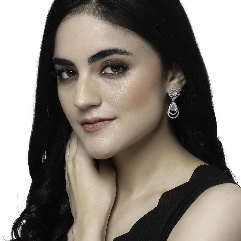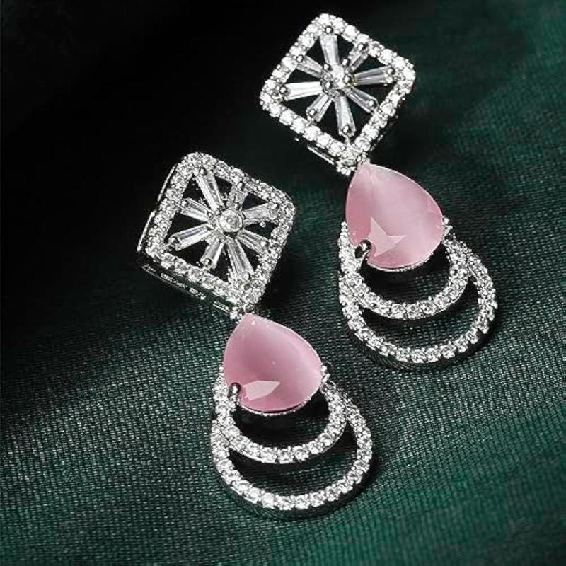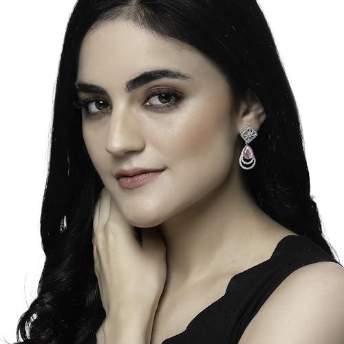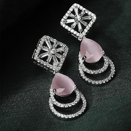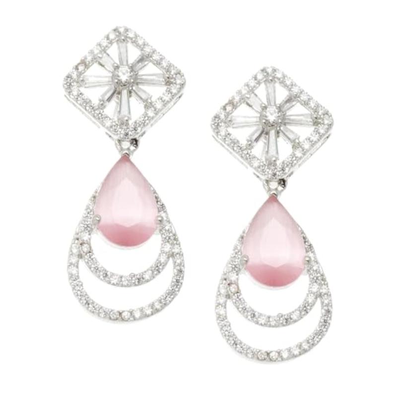 Add a touch of elegance to your outfit with these handcrafted teardrop earrings featuring American diamond accents. The rhodium-plated finish ensures a lasting shine.