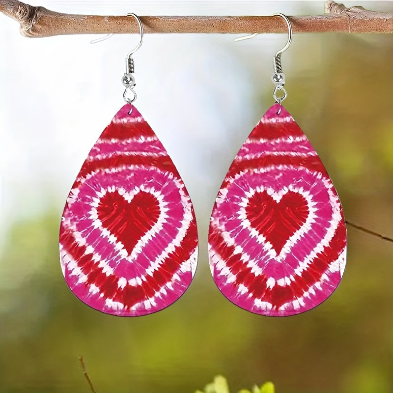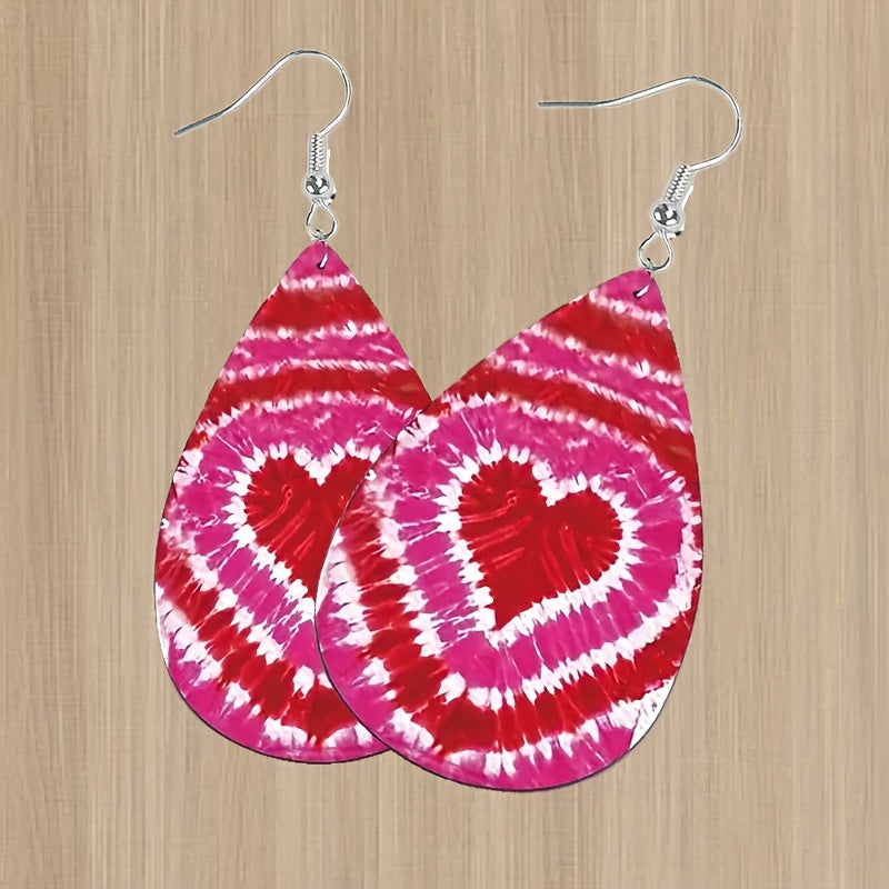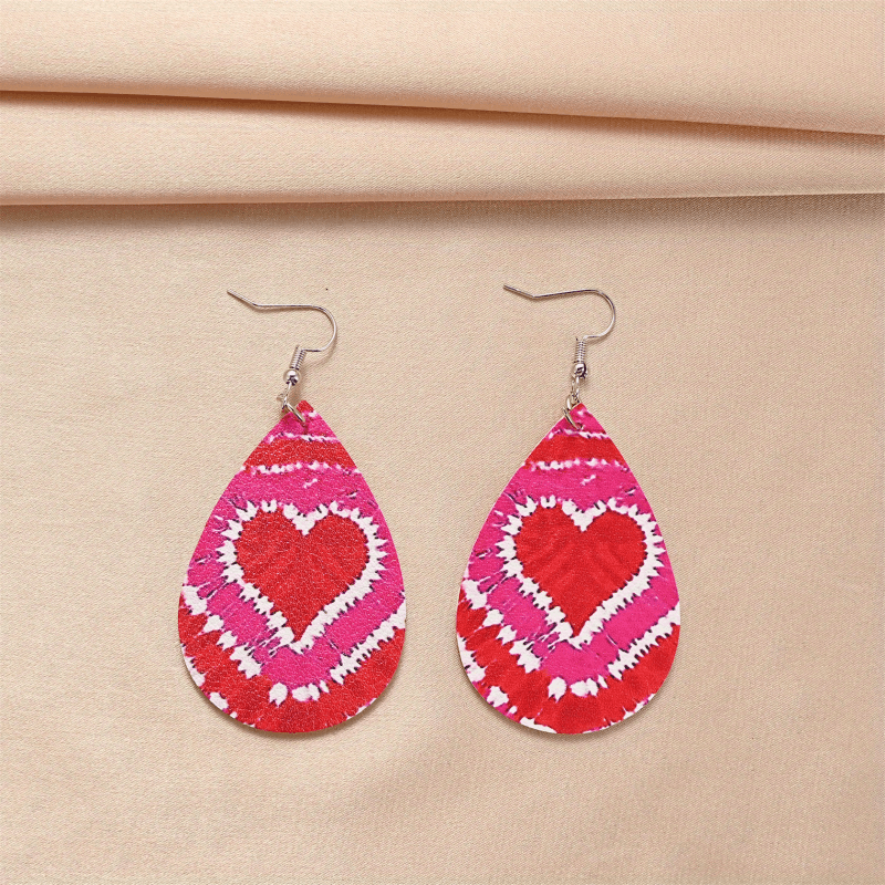 These teardrop shaped PU leather earrings feature a colorful love rainbow print. Perfect for men or as a gift!