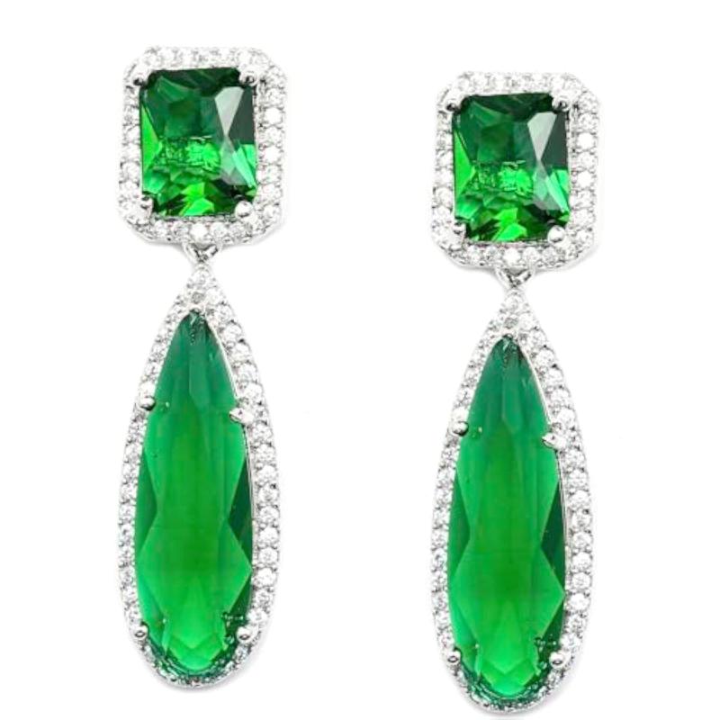 Elegant rhodium-plated earrings featuring teardrop design with sparkling American diamond studding. Perfect accessory for any occasion.