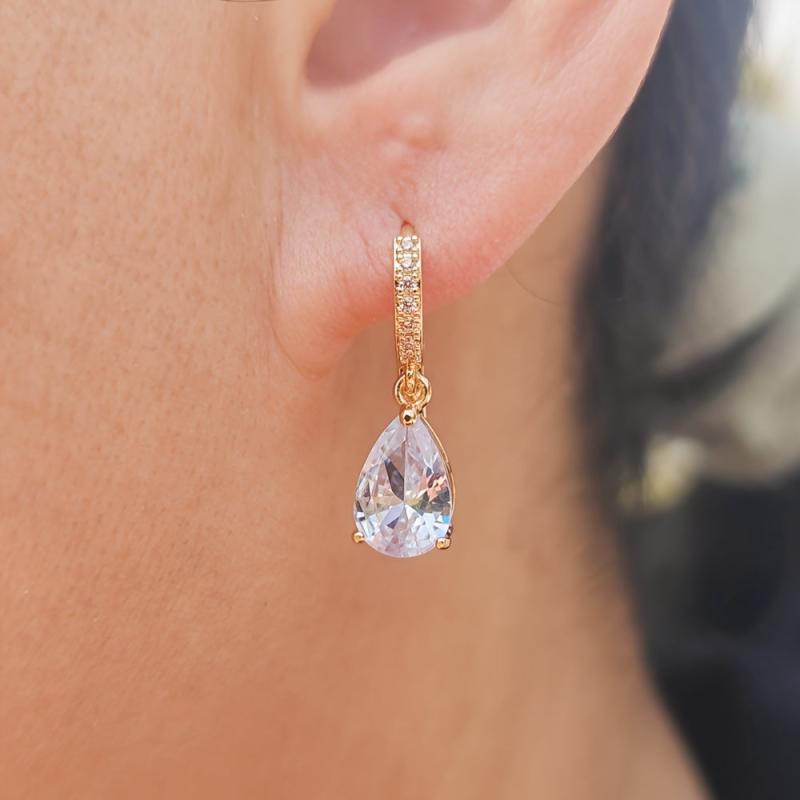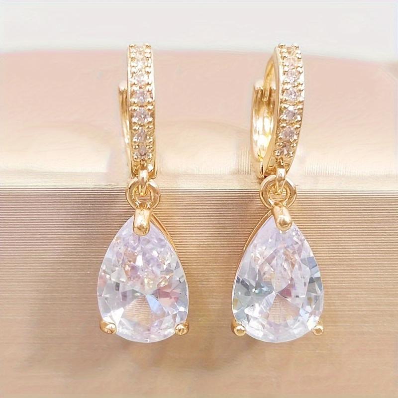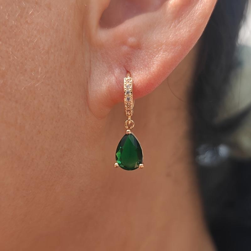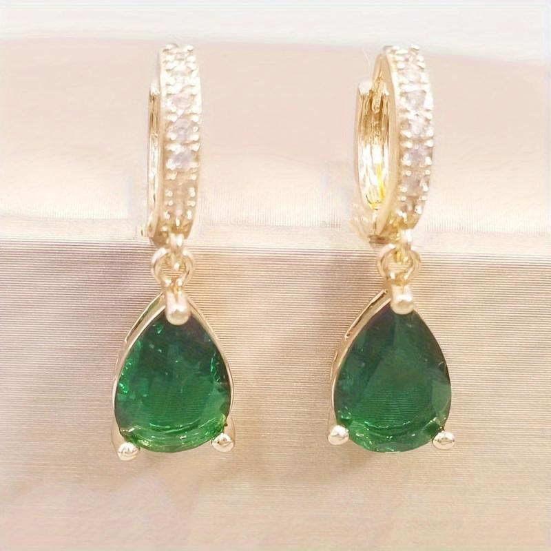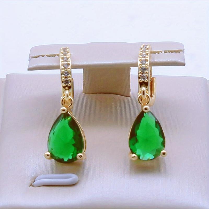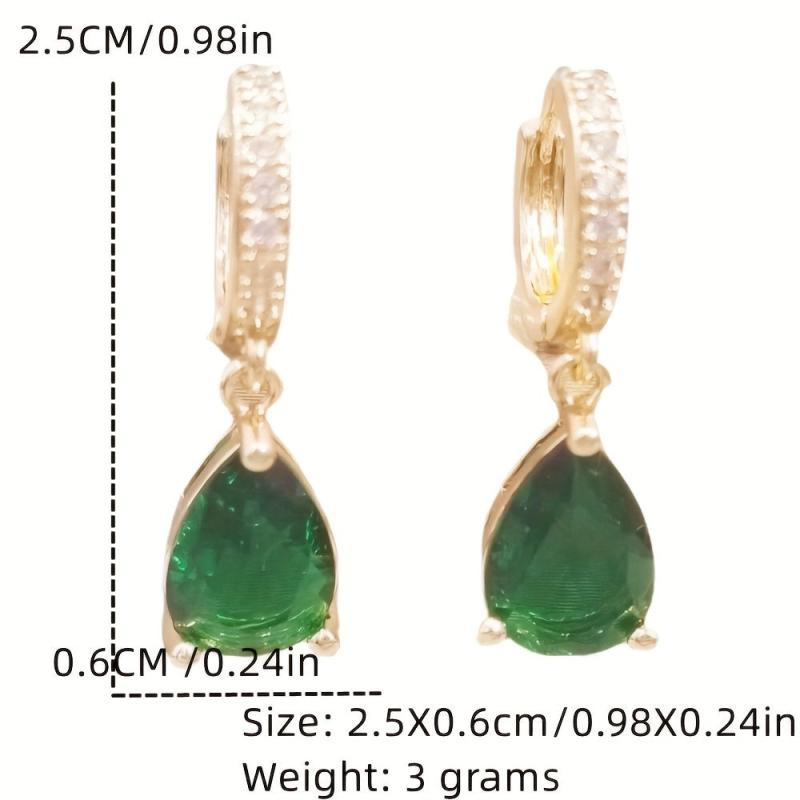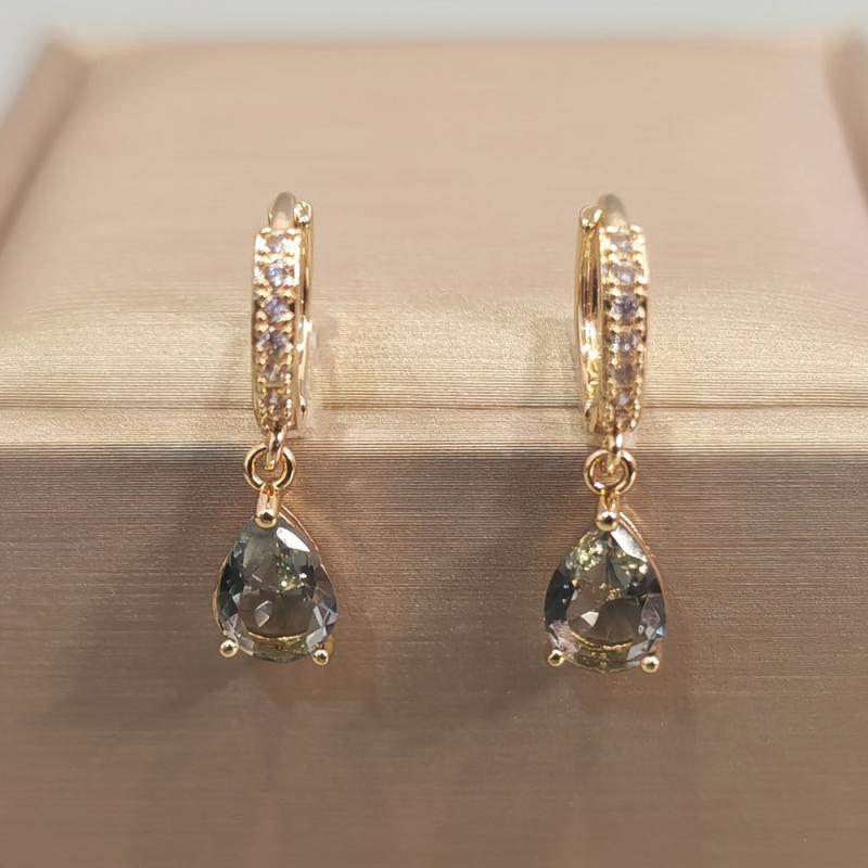 Elegant pendant earrings featuring green and gray zirconia teardrops. Perfect for adding a touch of sparkle to any outfit.