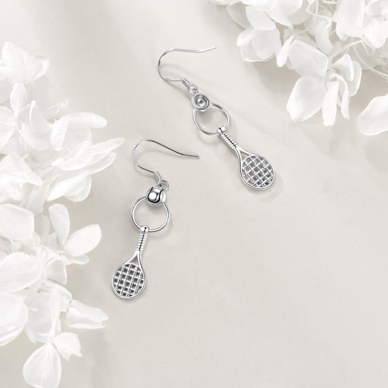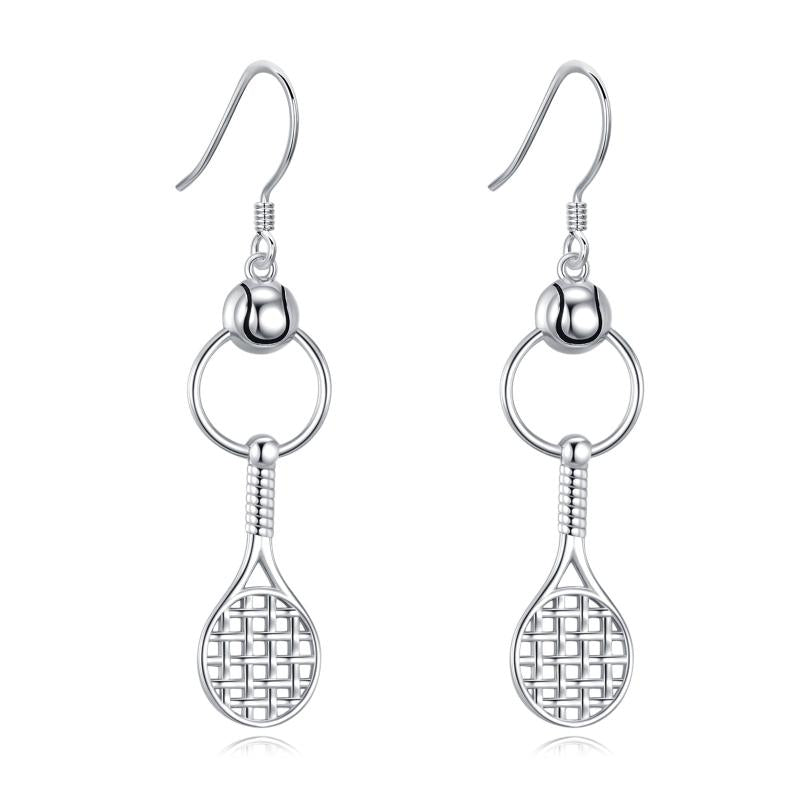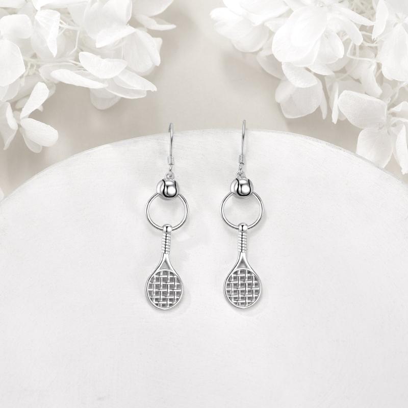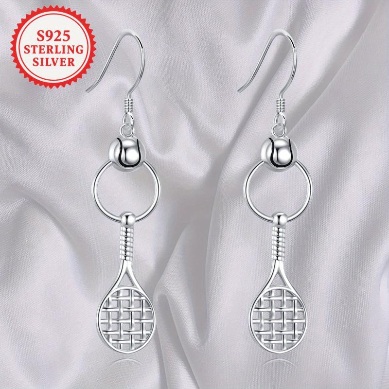 Show your love for tennis with these elegant sterling silver tennis ball dangle earrings. Perfect gift for tennis enthusiasts.